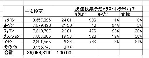 (一次投票WIKIPEDIA,決戦予備調査ハリス・インタラクティブ)