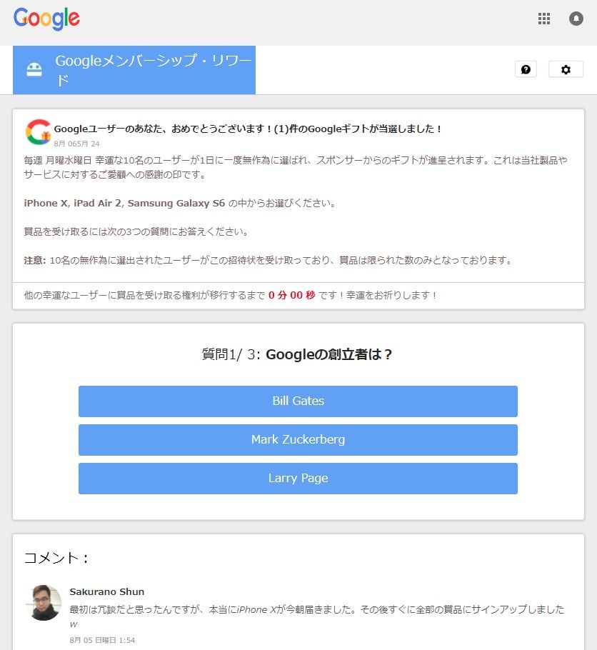 Google「当たりおめでとう」 Web画面に 現れる現象 |