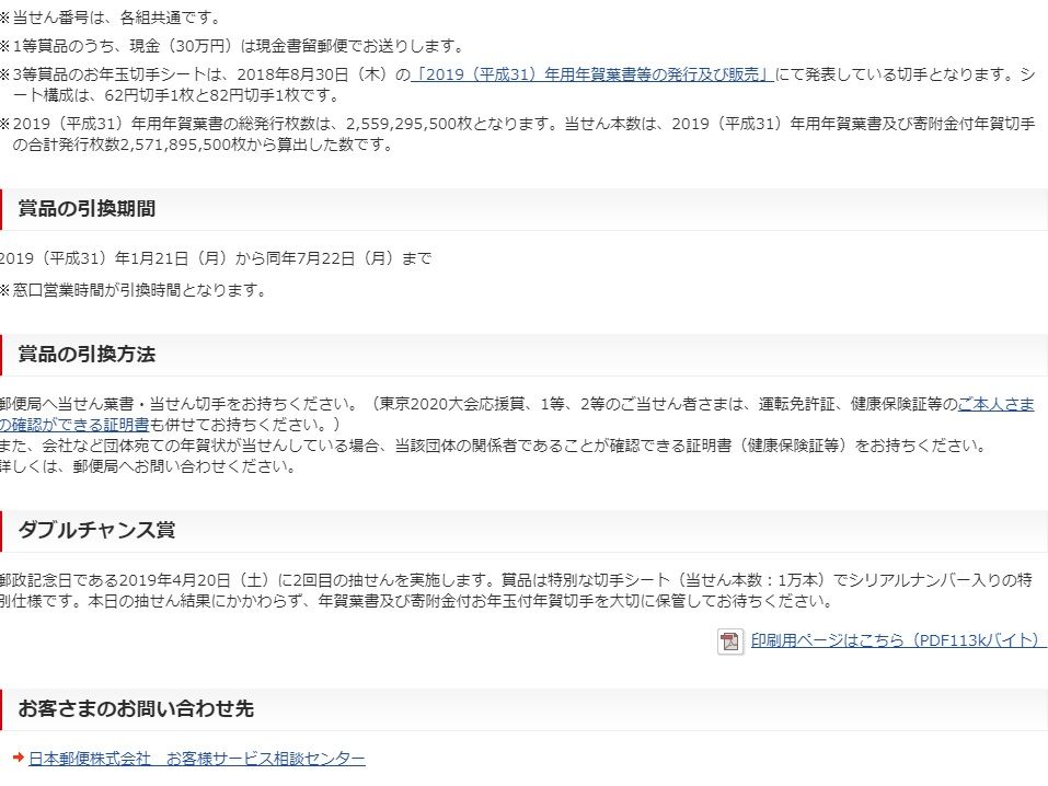 今年1月の年賀状「お年玉」当選番号発表に加え、