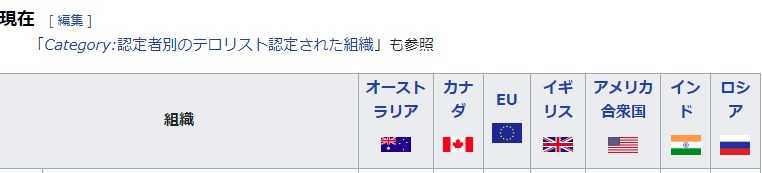 テロ組織と認定された組織の一覧