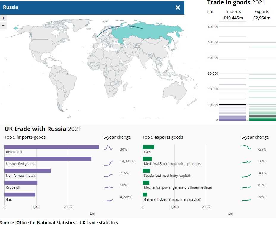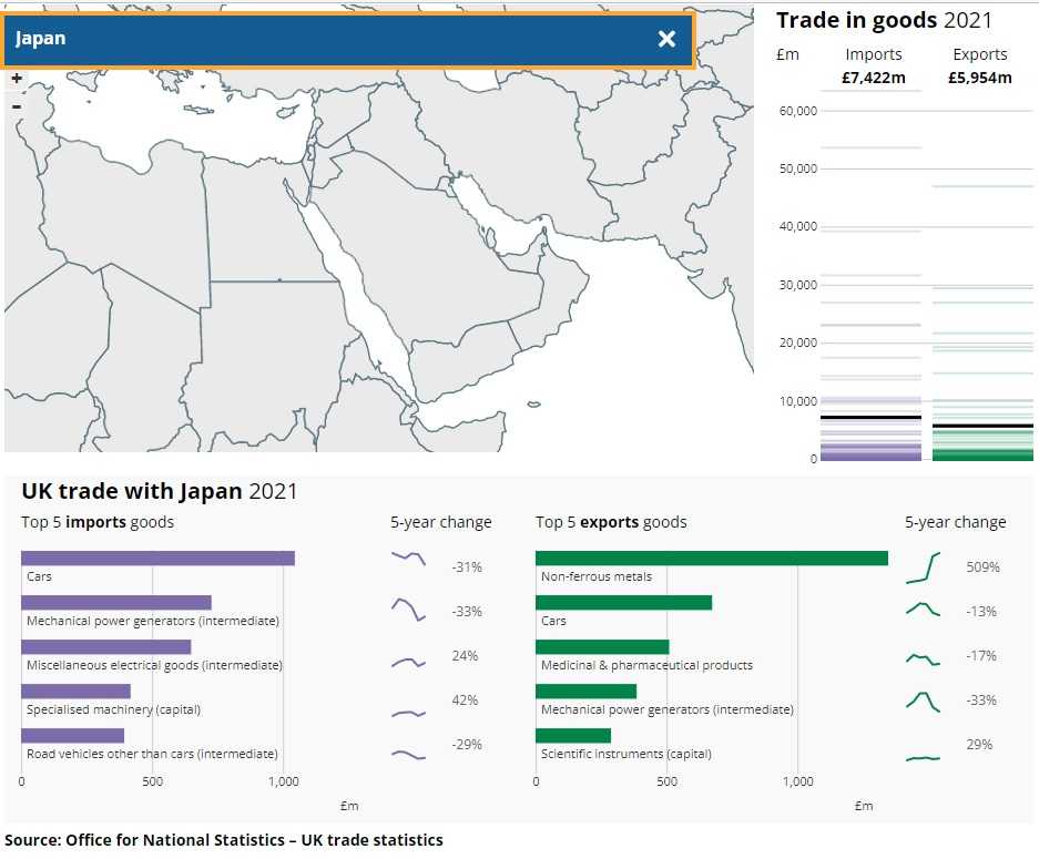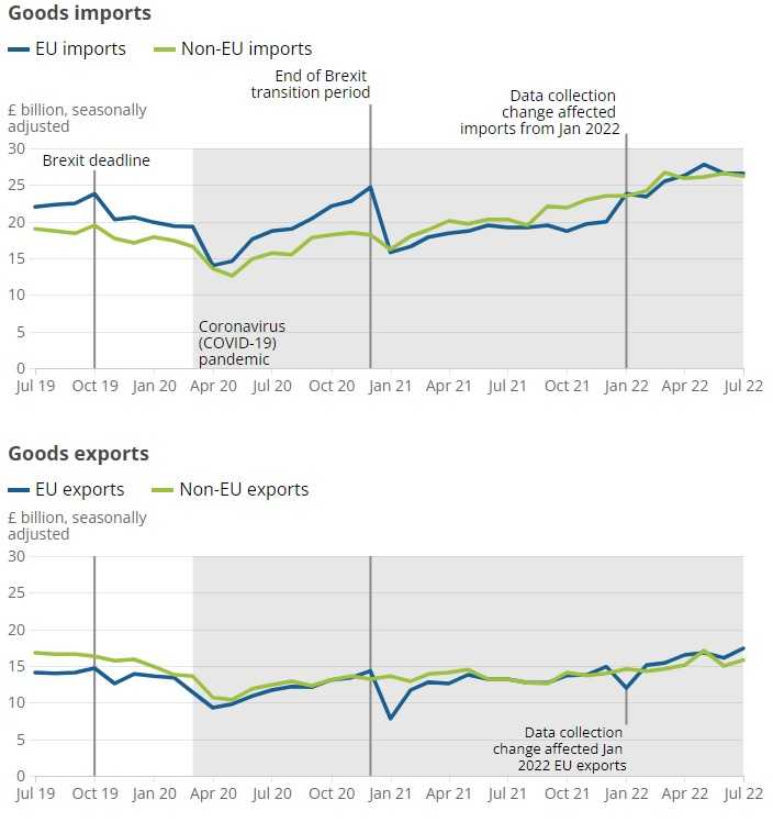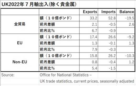 2.2022年7月のUnited Kingdom の総合貿易( 除く貴金属