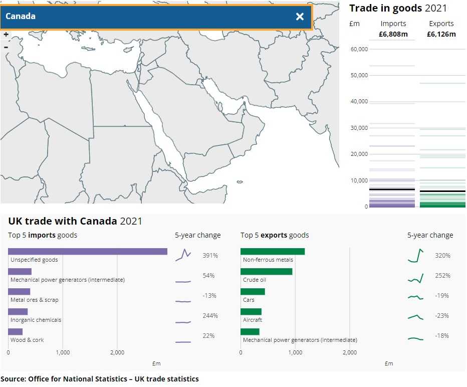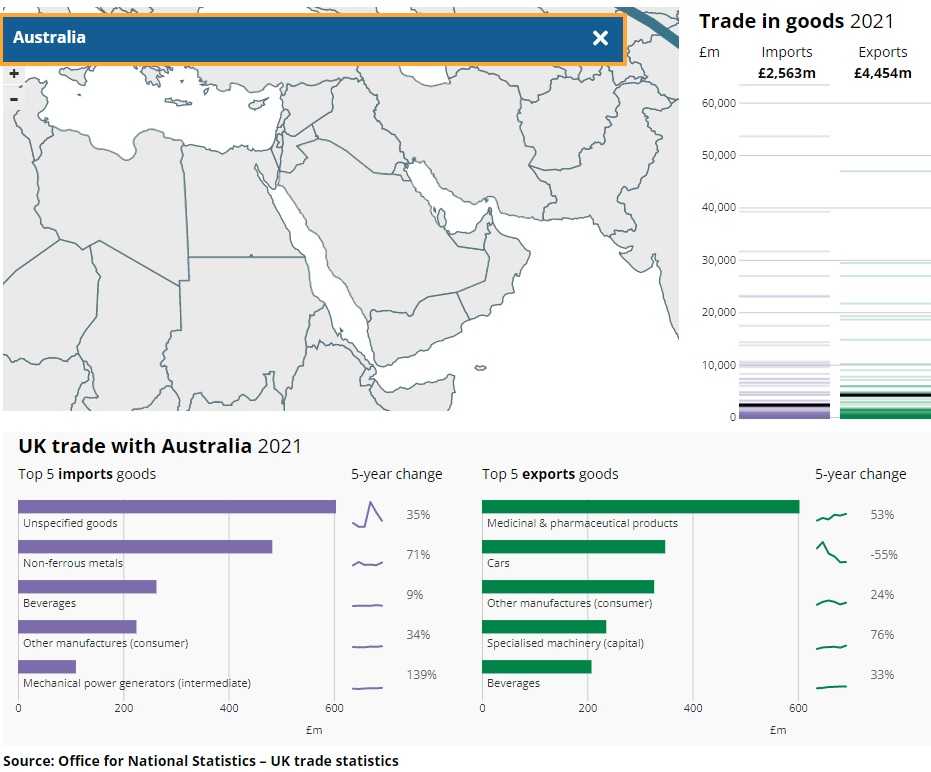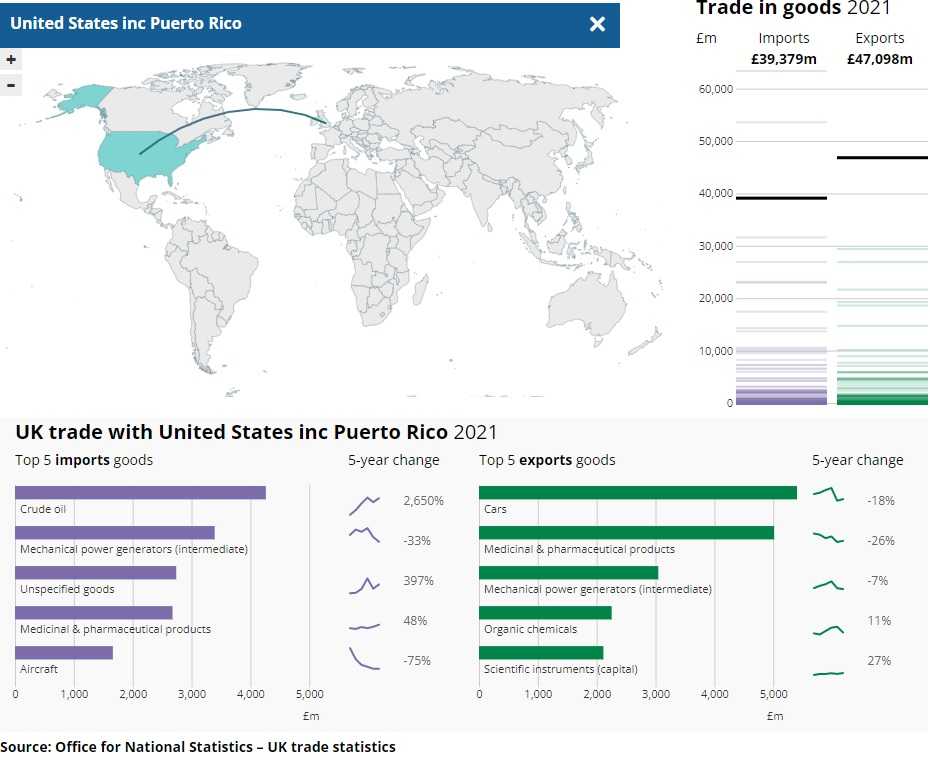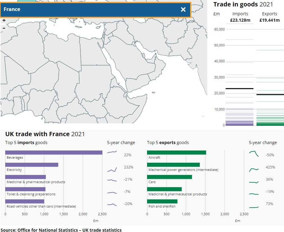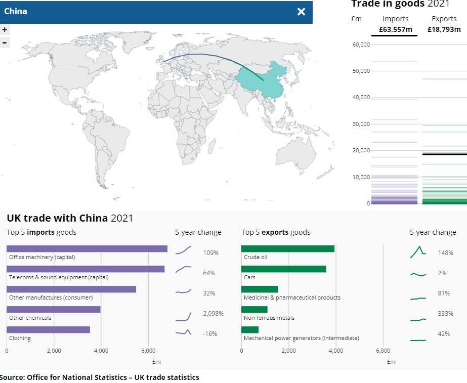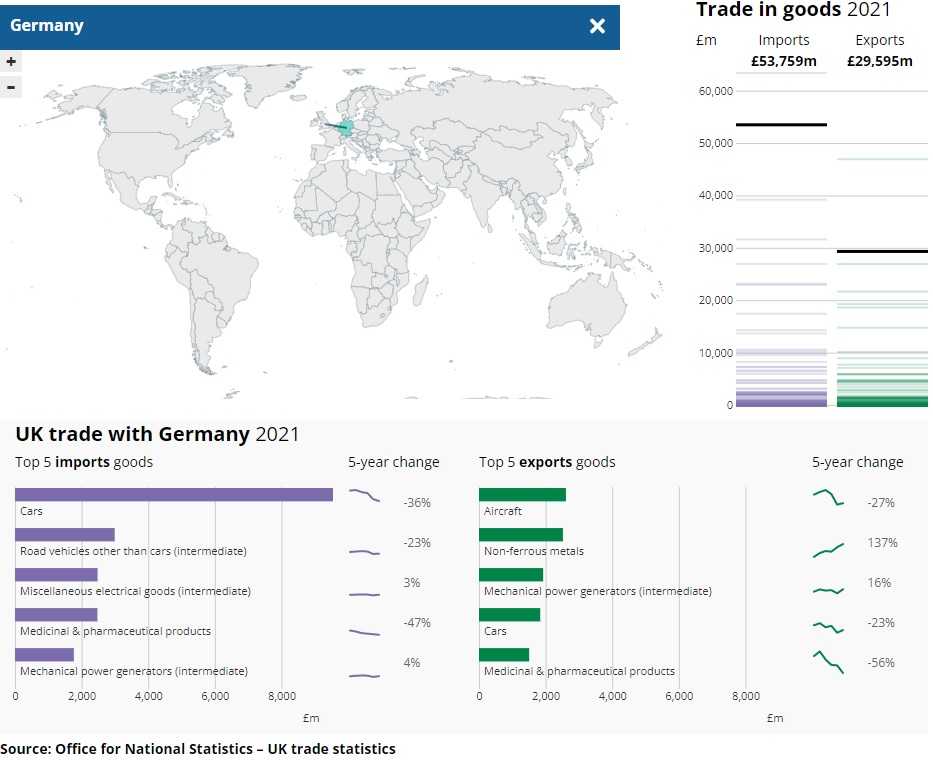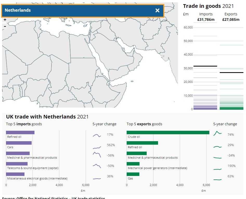 5.UKの「2021年」の主な国との貿易(輸入・輸出)