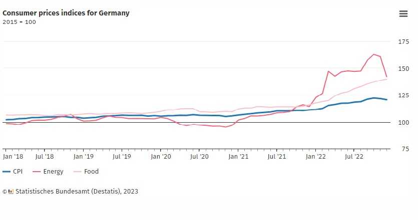 橙色の線:ドイツの食品価格(じわじわと締め付け役)
