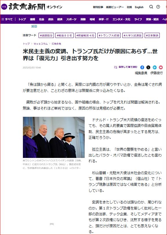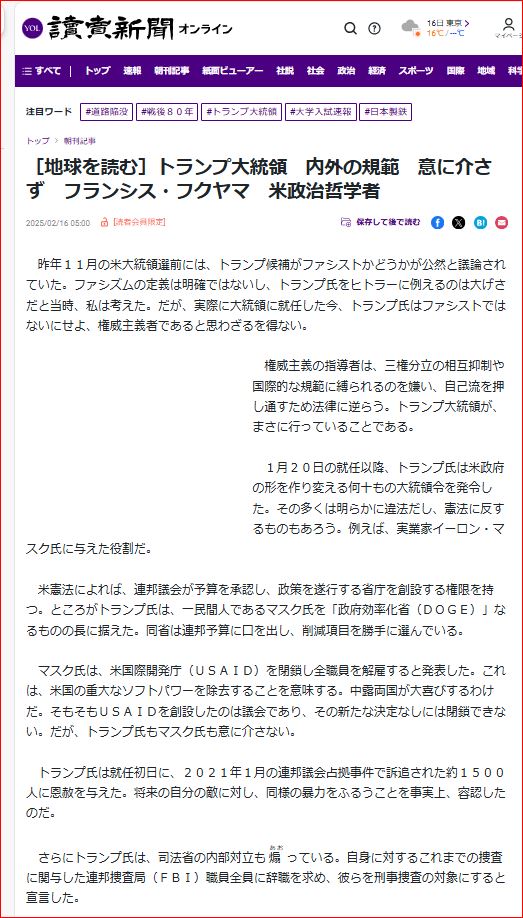 露の旧友となりつつある返り咲き米国大統領 Feb 23, 2025
