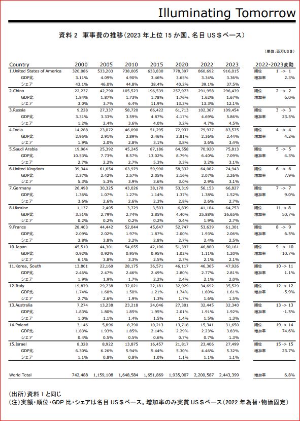 世界の軍事費ランキング