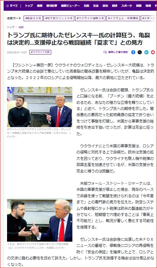 露の旧友となりつつある返り咲き米国大統領 Feb 23, 2025