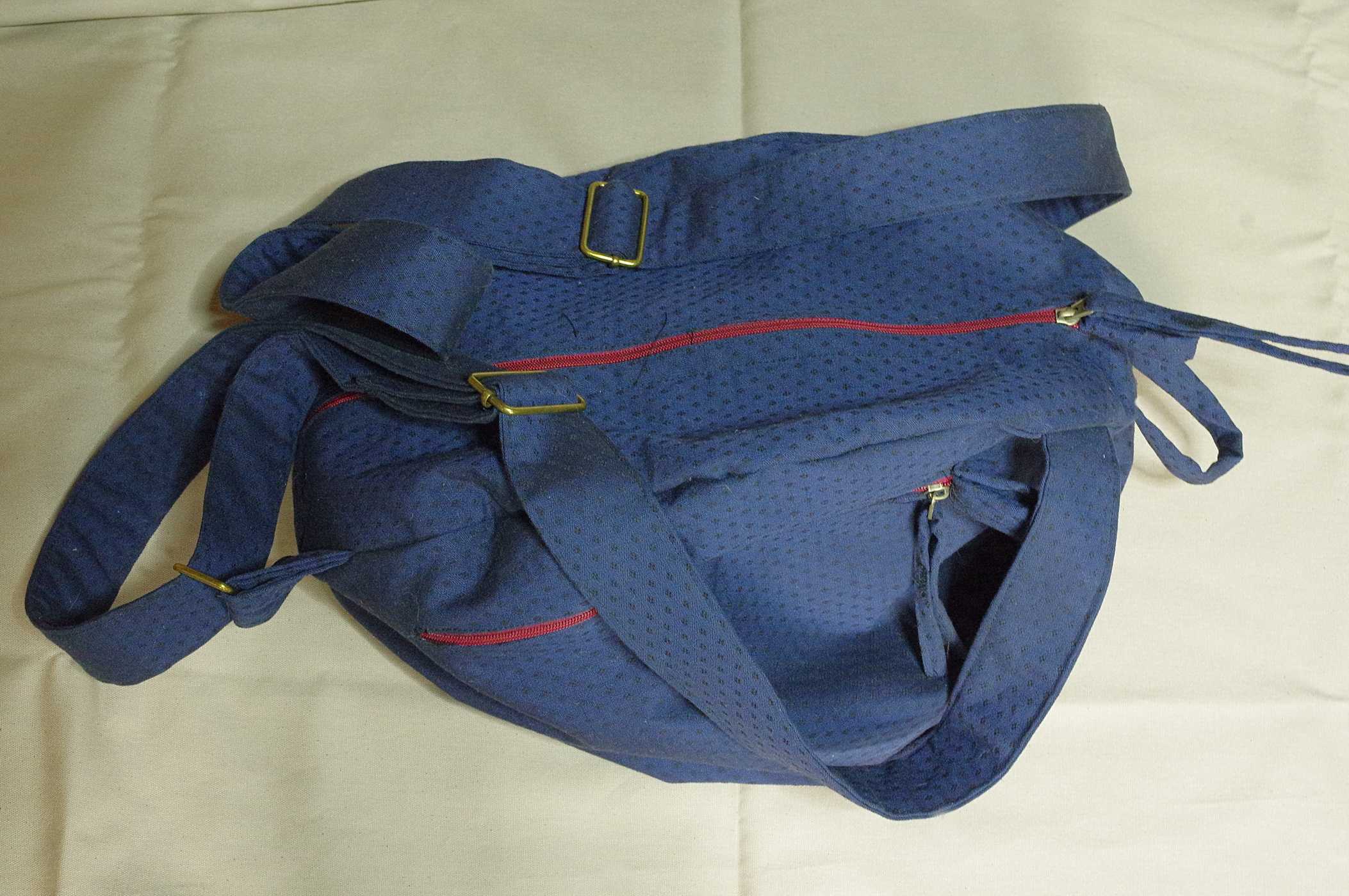 ちょうど、肩にかけると、上にファスナーが位置し、横にポケットになる。