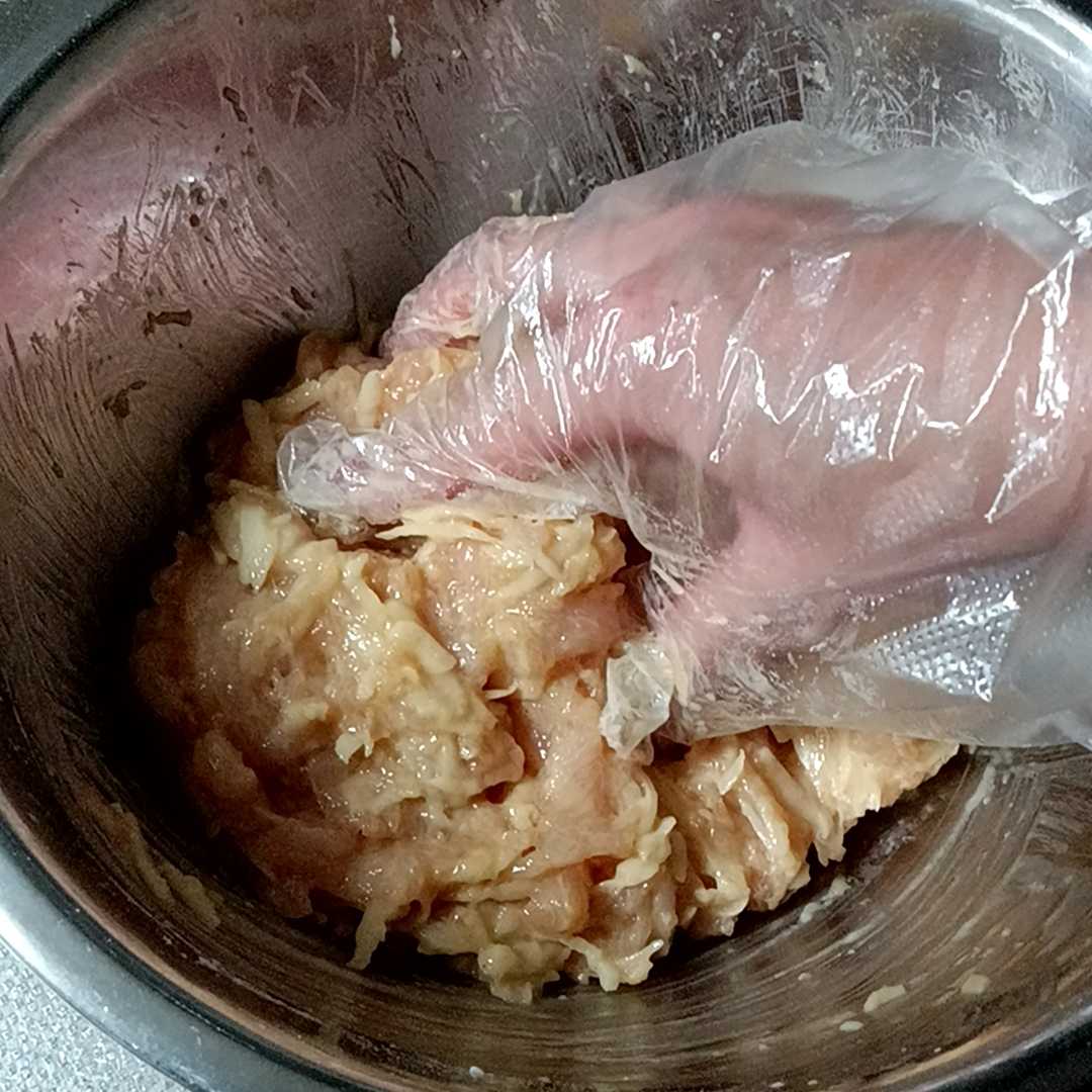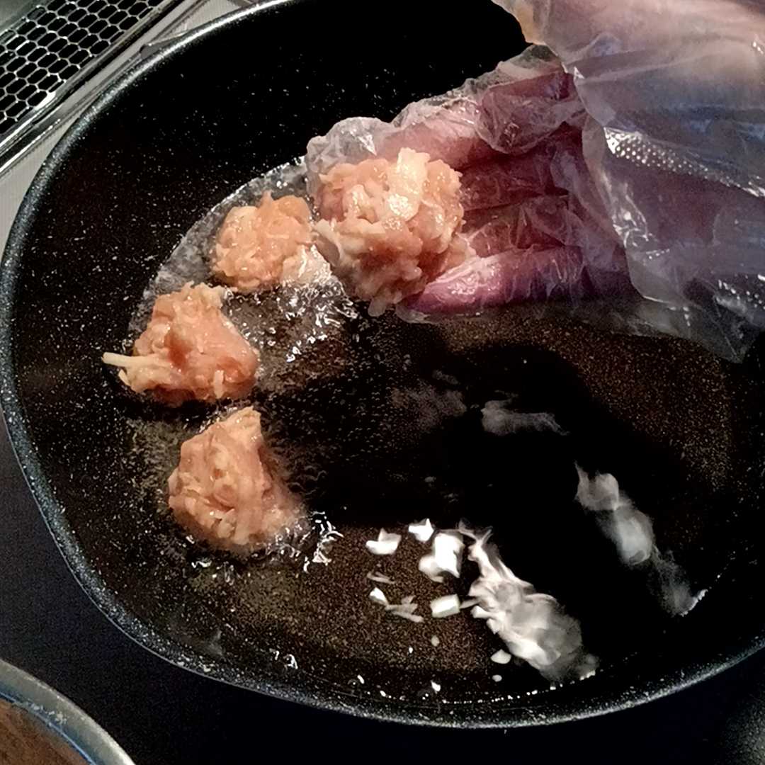 次は普段の唐揚げを作る要領で調味料を入れて、片栗粉を 多めに