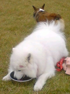 ちわ~っす。 るん。の父ちゃん ヒカルイクです。 昨日の休みはるん。と殆ど一緒に過ごしました。 まずは近くのスーパーで買い物をした後、母親の家へ。 るん。来て機嫌良かったです。 ヨード卵光のプチケーキと、ゴマ豆、ヤクルトハーフで誕生日祝ってくれました。 るん。良い顔してます。 昼過ぎてから、つがる市柏のイオンモールに行きました 。 るん。のフードが無くなって、つなぎでアイムスのラム&ライス買って食べさせてましたが、あまり好みでないようです。 いつもはニュートロのラム&ライスなんですが、売っている店があまりないんですよ。 青森市内でも二軒ありますが、確実にある店はここだけです。 昨日の晩ごはんからアイムス+ニュートロで食べさせてますが、食いつきが違います。 やっぱりニュートロでないと駄目みたいです。 柏のペットプラスでるん。のフードを買ってすぐ青森へ戻りました。 後は夕飯に足りない物をヨーカ堂とカブで購入して帰りました。 家に着いた後すぐ散歩に行きました。 雪が溶けて凍って道路がツルツルなのと、轍が氷状に固まって歩きにくくて大変でした。 雪の話になりますが、3月に入って雪結構降ったんですが、その後雨降ったり、天気よくなったりで、るん。の雪ぼんぼり見れなくなりました。 雪ぼんぼりの画像は3日のものです。 これも久々にいっぱい着いたんですよ。 丼いっぱいの雪で体重くなって、最後はカミさんに抱っこされて帰宅したそうです。 今度は道路が汚くなってくるので、散歩終わった後が大変になります。 と言う事で…。