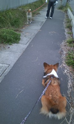 いや~寒くなりましたねぇ。 朝散歩も辛くなって来ました。 天気予報も雪マーク出てますけど、先日のような暴風雪にならないと良いんですが。 昨日久々に午後散歩行って来ました。 3時過ぎ頃に家を出て、保健大学に直行です。 途中でるん。のワン友の柴のみずきに遭遇。 早速待ちのポーズ。 仲良しのワンには必ずこうします。 大学のグラウンドで別行動になったんですが、みずきが近づくとまた待ちのポーズ。 みずきが来ると今度は他のワンが来ないか入り口の方を見て待機。 何故か2匹で待ってます(笑)。 さくらを待ってたんですが10分以上待っても来ません。 みずきの父ちゃん寒いって帰ってしまいました。 みずきが帰った後、仲良しワン友何匹かやって来ましたが、さくらなかなか来なくて、30分位でやっと来ました。 その後はお決まりのノーリードラン。 その直後、警備員来たので一時退散。 家の周りを一周して、また大学へ。 するとグラウンドにるん。のガウ友のシュウトがいました。 いつものガウガウとコギプロしばらくやってました。 さくら来てから写メ撮れなかったので、画像無しです。 すみません。 次はコギプロしてる所撮れたら載せますね。 さくら直ぐ帰ったので、シュウトと5時過ぎまで遊んでました。 4時過ぎると大分暗くなりますね。 普段、会社の中にいるとわからないんです。 最後はいつものおやつ祭り。 るん。はシュウトの母ちゃんから、シュウトは自分があげます。 ちっちゃいジャーキーやビスケットをポイポイ放ると上手にキャッチします。 帰るまで続きます。 コギプロやランよりそっちの方が楽しみのような感じがします(笑)。 いつもそんな散歩だから、大学のグラウンドに行くのが好きなんですね、多分。 と言う事で長々と散歩の話を綴ってみました。 最後の画像はるん。のウン○ポーズです。 すみません(笑)。