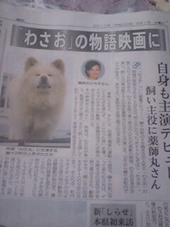 1日の東奥日報朝刊より 「わさお」の物語映画に 自身も主演デビュー 飼い主役に薬師丸さん 「わさお」ついに銀幕デビュー。 鯵ヶ沢町のイカ焼き店の人気犬「わさお」の物語が映画化されることが31日、明らかになった。 タイトルもずばり「わさお」。 捨て犬だったわさおと、わさおを取り巻く地元の人たちの感動の物語。 わさお自身が主演し、飼い主の菊谷節子さんの役を薬師丸ひろ子さんが演じる。 10月から鯵ヶ沢町内でロケが始まり、来年東映系で全国公開される予定だ。 …そうです。 新聞見て、なんじゃこりゃって感じで…。 最近は関連商品も多く発売されて吉○三グッズより売れているとか。 先日もわさおに会いに行ったら、交通整理の警備員さん立ってて、気軽にお店に入れる感じではなかったんですけど。 ますます、近づき難い存在になりますね…。 んでも、薬師丸ひろ子=イカ焼き屋の母さん。 イメージが違い過ぎます(笑)。 ロケ覗いてみたい気が~。