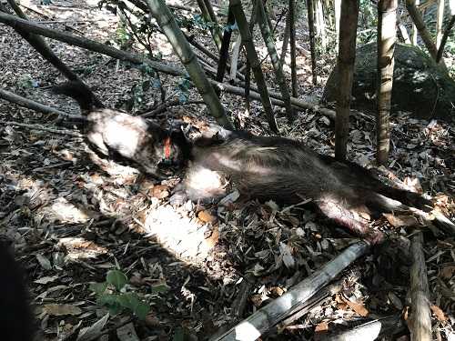 追われたと思っていたが、逃げる猪が急ブレーキ、止まったんだ。後で動画見たらわかった。初矢が尻に当たり半矢碧四、こんな時は強気でした。お蔵入りの動画ですが・・・https://youtu.be/kRqPG-_fqc4