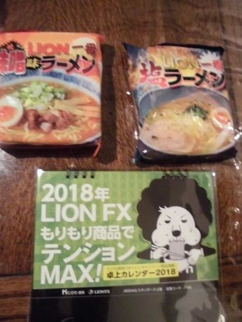 Lion FXの取引キャンペーン。10万通貨でもらった福袋です。卓上カレンダー、インスタントラーメン、リュック。使えそうなのはインスタントラーメンくらいか。リュックはこれで3つ目。ネットでは夜逃げリュックと言われているようです。