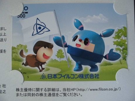 日本フィルコンの株主優待(100株保有)です。QUOカード保有が1年未満なのでQUOカードですが、1年を超えるとワインになるそうです。