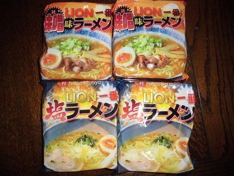 Lion FXのぞろ目キャンペーンでもらったものです。ラーメン(味噌、塩2つずつ)今回のインスタントラーメンもそうですが、ここのここのキャンペーンでもらえる食料品は、同じようなものの中では美味しいものが多いと感じています。