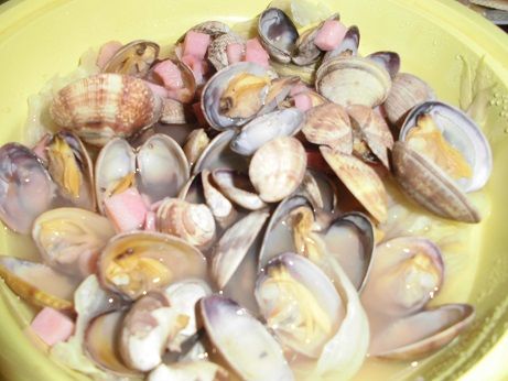 先日、Flowersでベビーホタテとベーコンを食べて美味しかったので、アサリとベーコンをレタスと一緒に白ワイン蒸に。