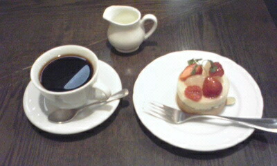 下はクッキー生地の中にスポンジ、上は梨のムースで、梨や苺が乗っています。