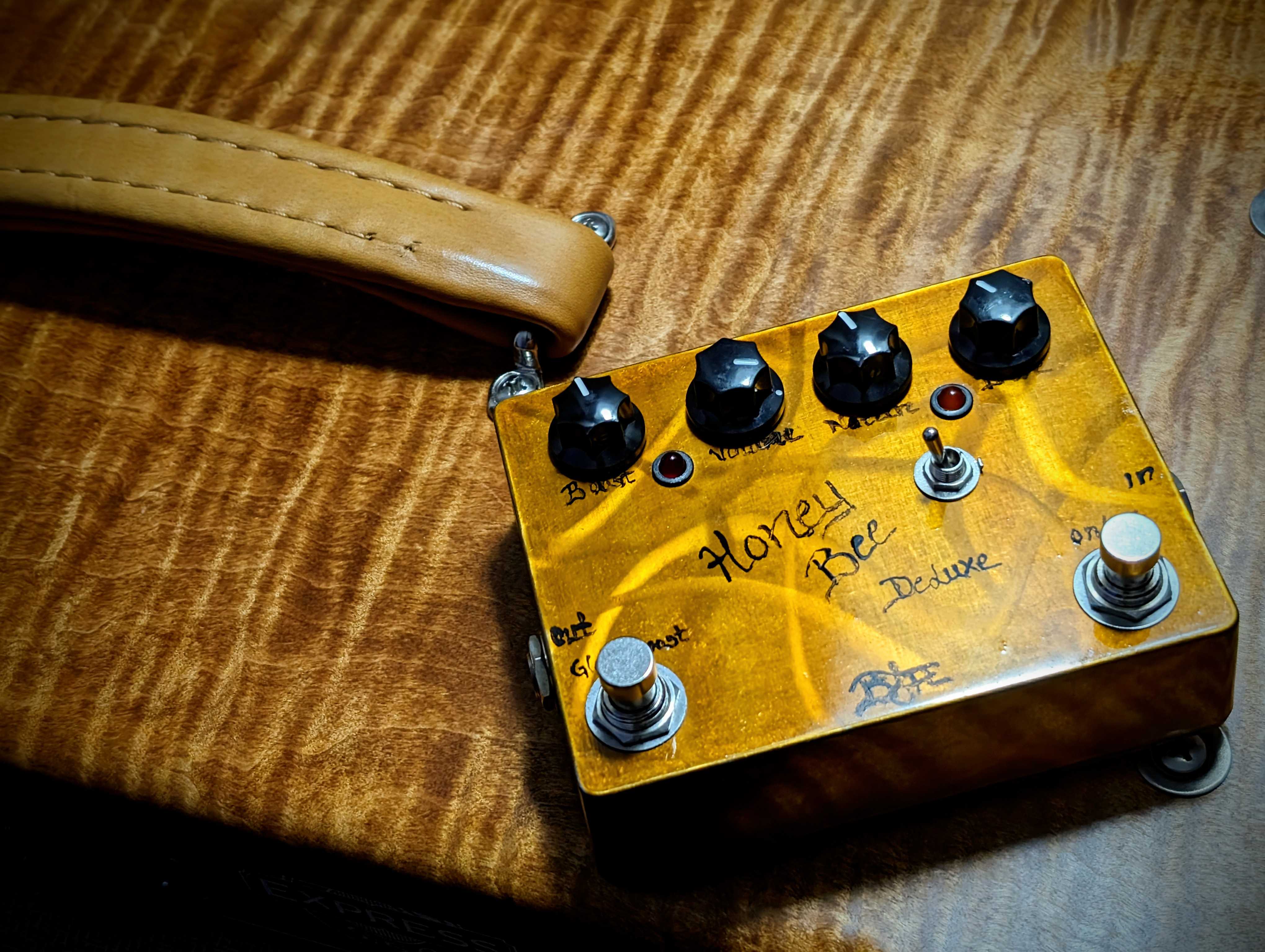 Honey Bee 発売から20周年を記念して発売されたモデル。 ローゲインでの透明度と高域のキラキラ成分が増してブライトな印象です。Honey Bee と比べて太く整った綺麗な音が特徴。取扱いメーカーの説明に『 チャイムの様な鳴り 』とありましたがその通りで、ピッキングに対して “ピンポ~ン” とまではいかないですが、デカい音でのダイレクト感が凄く、強弱を出すのに繊細なピッキングを求められてしまい扱いきれず手放しました。 解像度は同程度ですがアナログさ、生々しさに関しては Honey Bee に軍配が上がります。とはいえ Orchid Bee でしか出せない音があったので良いペダルでした。