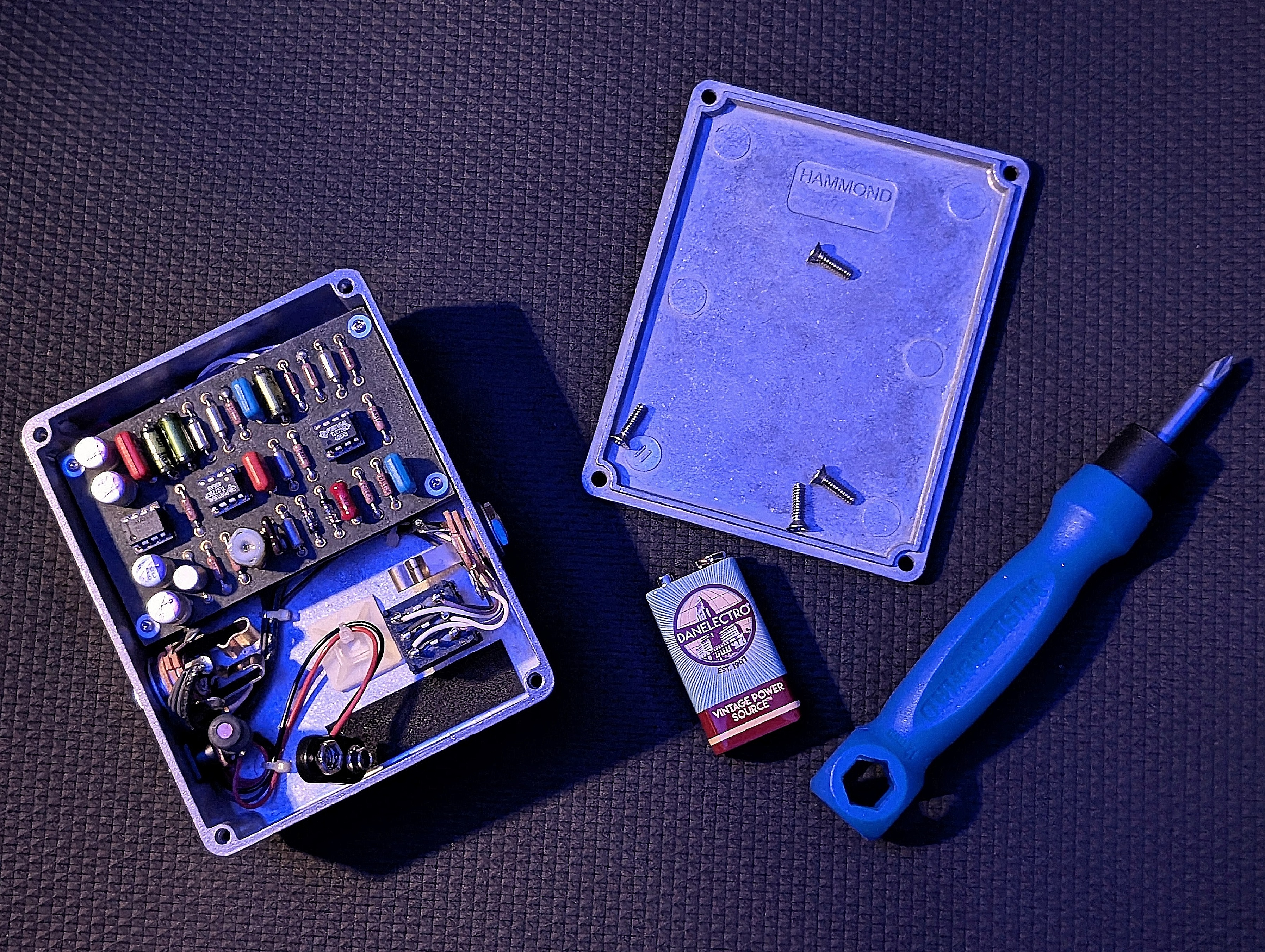 以下 nature sound HPより抜粋私が作っているのは手のひらに乗るほど小さなものに過ぎません。けれど、どの製品もふたを開ければ必ず感じていただけると思います。この筐体(きょうたい)に詰まっているのは、音楽のあらゆる技術者やプレイヤー達から受け継がせてもらった技術、知識、経験であり、日本のものづくりの職人から学ばせてもらった工夫、価値観の結晶です。エレキギターはアンプにプラグインしてこそ音が出る。楽器になります。楽器は演奏する者の意志、「声」を完璧に伝えられるものでなくてはなりません。エレキギターにとってエフェクターは、プレイヤーの声を決定づけるための道具であり楽器です。それを作るビルダーは、音楽に携わる職人としてプレイヤーの欲する声を追い求め、具現化し、提案することで、世の中を刺激する役割を担っていると感じます。筐体、線材、パーツ、すべてが音に影響します。何を選択したか、何を妥協したかの結果は音に如実に現れてしまう。加工しなきゃだめだけど加工のしすぎもだめ。そのさじ加減には経験や思い切り、センスが必要で、個々のビルダーの違いを生み出している部分でもあります。私が重視しているのはヴィンテージパーツの扱い方。個々のクセを把握して、最も効果的なところに適したものを配置できるよう力を入れています。誤解のないように伝えたいのは、ヴィンテージ品や値段の高いものがすべて良いわけではないし、現行品や安価なものが必ずしも良くないわけでもない、ということ。昔も今もパーツでもどんなものでも、良いものは良いしだめなものはだめ、それだけです。道具としての「姿の美しさ」も大切にしています。外観の加工精度が多少粗くても、はんだ付けが雑でも、電気的にはそれほど問題ありません。でも見た目がきれいなものは美しい音を出してくれそうな気がするから、少しでも加工精度を上げたいし、はんだは美しく処理したい。製品の魅力やポテンシャルを最大限に引き出すためにも、ぱっと見て「きれいに作ってあるな」と感じてもらえるような外観、基板、作り込みを心がけています。品質にどれだけ細心の注意を払っても、機械だから当然壊れることはあります。ユーザーの手に渡ってみて初めてわかる不具合もあります。そのたびに細かな改良を重ね続けてきました。壊れやすいジャック、スイッチはとくに信頼性の高いメーカーのものを採用しており、パーツも信頼性を最重視して、少々割高になってもできるかぎり高耐久性、長寿命のものを選んでいます。機材のトラブルが原因でプレイヤーの大切な演奏を止めてしまわないよう、エフェクターはタフな道具(ギア)でなければなりませんから。私は不器用な人間なので、手間を惜しまず、当たり前のものを一生懸命作ることしかできません。あなたの演奏を全力でバックアップさせていただきたいという気持ちと、人生を何度も救ってくれた音楽への敬意をこめて、すべての製品を送り出しています。nature sound / Zahnradビルダー 薫田 福雄プレミアム価格で取引されている “Zahnrad 4000Pre” に関しては以前所有していたことがあって、凄く高品質なペダルでしたが音が整い過ぎる印象もあって、“いなたい音(ヴィンテージ路線)” に走った俺としては使用頻度が無く手放してしまいました。そんな中、ビルダーの悲報(他界)を知り、“失われるトーンを1つは手元に残したい” と色々と検討する中で、“nature sound” 初期のフラッグシップモデル “PHANTOM” が欲しいなと探しておりました。そもそも “nature sound” 自体がハンドメイド・ワンオペ製作ということもあり、製造数が極端に少ない。その中でも初期の“PHANTOM”は限定数で即売り切れたブティックペダルですので無いであろうと感じていましたが・・・見つけました(笑) ■以下、正規取扱店 Tone Blue さんの説明より転記オペアンプにMotorola MC4558CP1、抵抗にAllen BradleyとDale、ダイオードにTelefunkenのシリコンダイオード、キャパシターにERO, Roedersteinなど、厳選したパーツをアイレットによるポイント・トゥ・ポイントにて製作。ミュージカルなサウンドに仕上げるために、配線材の選定はもちろん、ポットにも手を加えたりと、見えない部分にも手間を惜しまず完成させました。完成後に100時間エイジングを行う事で角の取れた耳に心地良い音に熟成させています。これらのこだわりが見事なバランスで融合し、倍音豊かで奥行き感のある芳醇なドライブサウンドが誕生しました。まさしく上質なチューブアンプで得られるあのニュアンスを実現しました。TS系(チューブスクリーマー)の回路を進化させた考え方の様で、他者のレビューでは『倍音が豊かで太く豊潤なTSサウンド』とありました。 キメ細かい歪みを持つTS系は個人的にあまり好きではなかった(やや粗めが好き)のですが、この “PHANTOM” に関しては確かに出汁はTS系なのですが素晴らしく奥行きがあり艶やか。お世辞にも素敵なペダルでした。