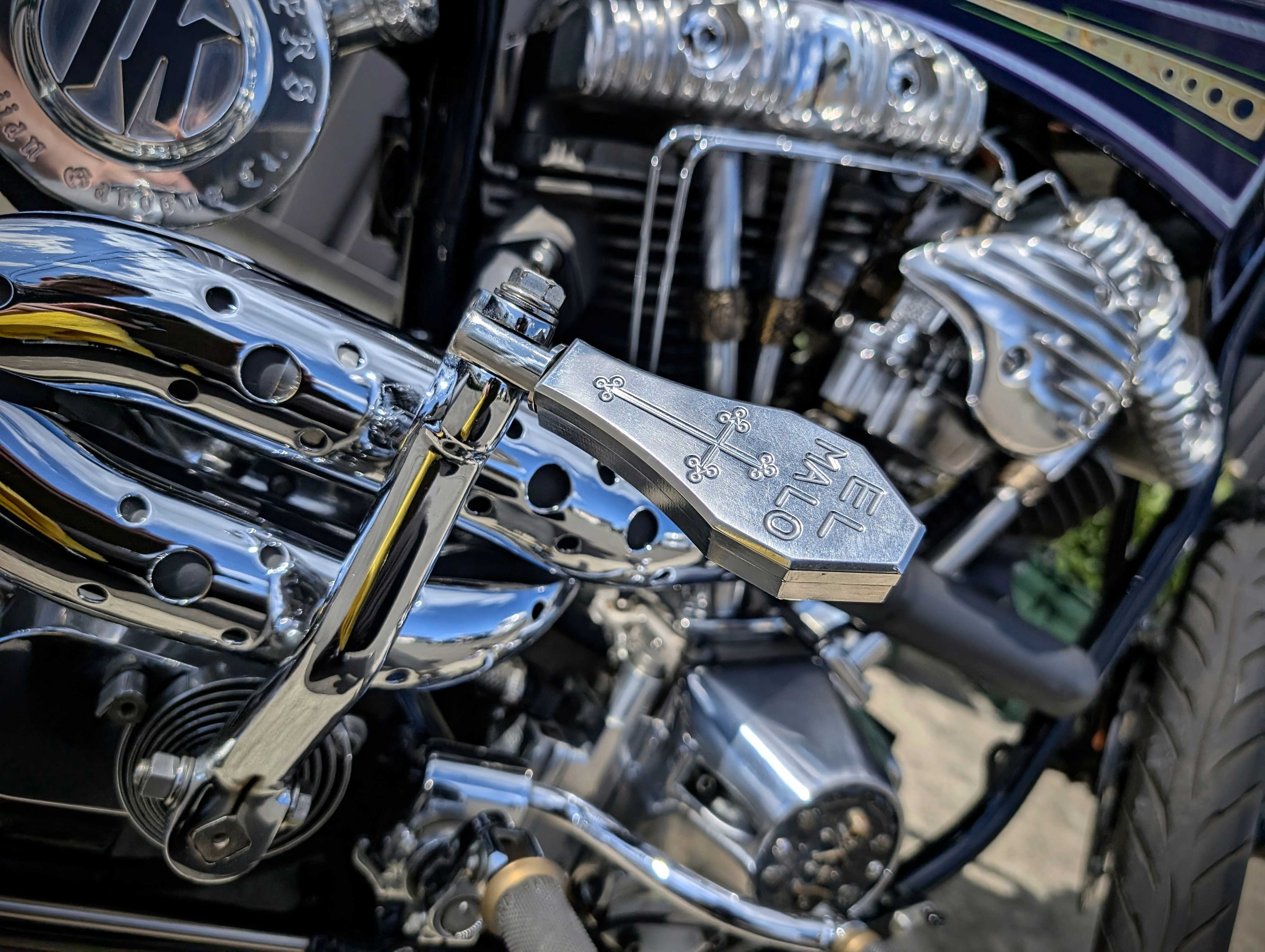 カスタムバイクって何が魅力なのかと勝手に語るとすれば。そもそもバイクの魅力は大きく分けて2つに分類されるかと。① 走りを愉しむ。② 乗り味を愉しむ。これ、似て非になるもので “①走りを愉しむ” は、スーパースポーツ等の製品ジャンル(カテゴリー)やメーカーによる製造コンセプトから備わった “装備・性能” を駆使してバイクの “走行” を楽しむことが言えます。 例:サーキット/オフロード/ツーリング“②乗り味を愉しむ” は、サーキットやオフロード走行といったものとは少し違い、 “バイク本体” の乗り味を感じるのを主軸に走行を楽しむ。性能云々ではなくて排気音や鼓動感といったバイク特有のフィーリングを味わうってこと、即ち、その物体(車体)のテイストを味わうことだと考えております。俺の場合はどちらかというと②がメイン。自分の愛車を見ると、前後サスペンションはスプリンガーにハードテイル。キックスタートONLYのノンロッカークラッチ(足)、ハンドシフトと、分かる人には分かる仕様になっています。専門用語だらけですが、分かりやすく言えば、自転車のような骨格に巨大なエンジンが載っていて、足でクラッチを操作してシフトノブでシフトチェンジする。四輪のMT車に近い。それこそサーキットマシンを崇拝しているライダーから見れば性能を削ぎ落して得た “乗り味” や “見た目” なので魅力が無いマシンなのかもしれません(笑) ただ、この手のジャンルの中では完成度が高く、乗り易い部類に入るんじゃないかと思います。1340ccの空冷Vツインモーターが股下で爆発し、心臓の様に脈打つアイドリングが車体を揺らし、大地を蹴り飛ばして弾けるように車体を進ませるアナログな乗り味。『だからどうした! それは必要なのか?』と一蹴されればそれまでですが、 “乗り物” としてシンプルに楽しく、玄人向けのハンドシフトとフットクラッチの操作もメカニカルで面白いのです。エンジンで生み出された動力はベルトを通してミッションへ、ミッションからチェーンへと伝わり、最終的にリアタイヤへ移行する。車体構成がシンプルが故に、どの様に力が生み出され、伝達されるのか、燃焼機関から駆動方式まで見た目で分かってしまう剥き出しのパワートレイン。エンジンとミッションのケースが完全孤立しているショベル(エボまで別体装着)だからこそのシンプルさとメカニカルな造形も魅力的。理解出来ない人には理解出来ないでしょうが、このバイクのように少しだけマニアックな世界があります。性能面で言えば今のバイクには到底敵うはずもないのですが、技術が進化し、規制が強まる現代社会では消えてしまった数十年前の機構によるテイストがこのバイクでは体感出来るのです。そもそも趣味であるバイクに実用性なんて考える必要性が無いので乗っている者が楽しいのかどうかが重要。 何だかんだで手に入れて間もなく20年。最初で最後の大型バイクになりそうです。