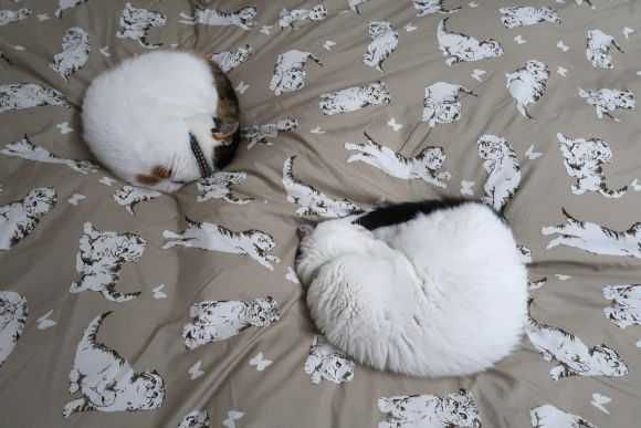 今日のクロスケ(16)は猫ベッドに前向きでいたよはっちゃく(18)はフェイスクッションの上…