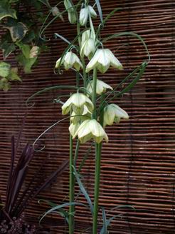 フリチラリアの仲間のひとつで、編み笠百合とも呼ばれているようです。二月、芽だし苗を初めて買ってみました。当時10センチ高くらいだったのが、すくすくと、今は50センチはあるかな。支柱を立てないと、倒れてしまいます。クリローに続き、うつむき加減に咲く花。特にこれはひっそりした風情。。茶花によく使われる花らしいですね。初めて、庭で咲かせてみる種類ってやはりわくわくします。昔オランダでは、新種のチューリップの球根は家一軒買えるほど高価だったと雑誌に書いてありましたが、プラントハンター、の気持ち、少しはわかる気がしたりして。(笑)今日は、昨日までの恐ろしい強風がやみ、ちょっとは安心して、庭に出ることができました。雲ひとつない、青空は久しぶり♪葉牡丹もだいぶ、とんがってきました。そろそろお昼、今日の「いいとも」は、長女が三人連れで見学に行ってるはず。百人にひとり、を狙うっと意気込んでましたが、どーたかね。そろそろ頼まれたビデオをセットしましょう。