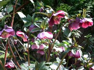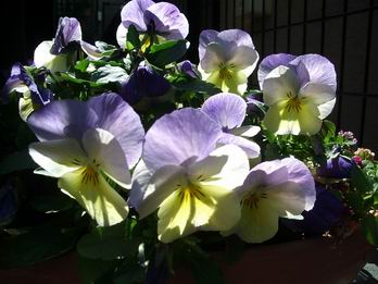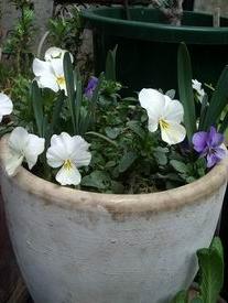 三年前、この家に越してすぐ植栽を頼んだ庭師さんが、玄関先のコニファーいろいろの下に、クリスマスローズとアメリカ岩南天を植え込んでくれました。クリローという名すら、当時の私は知りませんでした。。隔世の感です。ローズは偏愛しておりますが、クリスマスがつくと、いまひとつ盛り上がらず(^^;)経済的な面からも、その気持ちを大切にして(笑)あまり手を出さずにおります。最初は、三色六株だった記憶がありますが、一番好きだった白は、二年目には消滅。今は上の薄いピンクと、下のもう少し濃い色が律儀に咲いてくれる。嘘偽り無く、年間を通し、手入れらしいものは何もしてまセン。肥料もなし、水遣りも実は、したことがない。。完璧な、放置。 コニファーがかなり枝を伸ばしたのと、自分がむやみやたらに、エニシダやハーブ類をあとから植え込んだせいで、混みあって手入れがしにくい場所になってるせいもある。(思いっきり言い訳)最近あちこちのブログで見かける、女王のように奉られた(笑)気高きヘレボたちに比べ、まこと庶民系、野の花系なうちのクリスマスローズたち。三年たって、少し何か、ケアしてあげたほうがいいのでしょうか??鉢はひとつだけ。八重らしい苗を980円で冬買いました。花つきなら五千円しますよ、と言われてつい、フラフラと。とりあえず、新葉をいくつも展開し始めてますが、夏越しできるかどうか。。。パンジー、シャロンシュープリームが、一気に本気モードになったようです。ゴージャス系ですね。目立つやつです♪