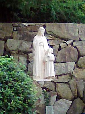 ★☆崇高な母と子の愛を感じた★☆ Christ and Maria ある日、ドライブ中に幼少の頃、お世話になった若いスペイン人神父のいたカトリック教会の裏に差し掛かると、懐かしい「聖母マリアとイエスの像」が目に止まったので、思わず車を止めて携帯のカメラで撮影して記録した。少年の頃は何度も目にしていた像だが、時の経過とともにすっかり忘れていた。この像を見ると、何かとても崇高な母と子の愛を強く感じてしまう。 あの神父はクリーム色の旧型フォルクスワーゲンを愛車にしていて、当時その車を興味をもって見ていると人なつっこい笑顔で車に乗せてくれたり、教会の自分の部屋に招いて趣味の切手収集のコレクションを得意顔に解説付きで見せてくれたものである。僕が高校生まで続けた切手収集はその影響が強いと思う。青い目の美人シスター(尼)を目の前で見て、ヨーロッパ人女性の独特な天使の様な美しさに衝撃を受けたのもその頃であった。その神父もはるか昔に日本人女性教諭と結婚して本国へ帰国、今ではローマ教皇の命?で入れ替わりで来日した何代目かの別の外国人神父がいるようだ。(Thanks) !!↓(ありがとう)^^)/~~♪どのページへのリンクもご自由にどうぞ。♪