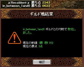 だからあれほど戦跡はその日のうちに書けとだな・・・忘却の彼方なんでまとめてUP02.19 vs in_between_1and0こちら参加シフ武/BIS2/WIZ2/アチャ/悪魔/剣士相手いっぱいよっしー不在・・ガイルさんはry悪魔となんとかタゲあわせせねばな。足止めからの得点もあったけど気がつくの遅かったし・・ただでさえPPなのにPSも落ちてるって^-^;;頑張りましょう!02.21 vs 未知の指こちら参加またも範囲不在、シフを自由にさせてしまったのが悔しいところ最後のほうなんかリンチにあいました^^02.26 vs 武神前回はすごい接戦でギリギリで勝ったかと思います紙野郎に800近いシフさんの攻撃は耐えられるのか・・!こちら参加久しぶりにフルメンに近い!GVのコメント欄に1PTくらいって書いておいたからなんか詐欺してしまったみたいで申し訳ないなこれ・・・参加不安定なのがいけないんだけども結果今回も取って取られてでした。武道が多かったし雨止んだら投げてくるしで・・・シフさん痛かった・・でもWIZ1のようでしたので火力で押し切ることができましたね悪魔とタゲ合わせ?(ヾノ・∀・`)ミリミリいや、頑張りますbetweenさん、未知の指さん、武神さん対戦ありがとうございました!それから最近GVなかなか決まらないことが増えてますのでGV相手募集してますもちろんGメンも随時募集しております!気軽に耳を!