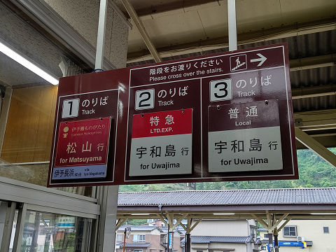 松丸駅から宇和島行きの列車は、0系新幹線。窪川駅に転車台がないので、後ろ向きに走るという奇妙な光景で入線。 pic.twitter.com/faAj9waOK9— たーぼ (@hare_no_kuni) April 24, 2022 車内は、新幹線と同じシートが4席、あとはロングシート。 列車の模型が展示されているほか、普通郵便対応の郵便ポストもある。 乗客は10にんあまり。生活交通のホビートレイン目当てと半々くらい。ガチの鉄ちゃんはいなさそう。 近永駅では、行き違いのため停車。ここで、ゆっくりと写真撮影はできる。 対向列車は、ウルトラマン列車だけど、入線直後に直ちに0系が出発するので、注意が必要。 予土線の愛媛県内の路線は、かつての軽便鉄道の宇和島鉄道の路線を活用した部分が多く線形が悪く、特に務田駅から北宇和島駅までは、線形が悪く、時速30キロでソロリ。 北宇和島駅の手前で予讃線と合流。 終点の宇和島駅で、鉄路は行き止まり。宿毛駅まで延伸の夢は途絶えている。 予土線の川柳が掲示されているけど、予土線って、愛を育む路線だったかな?どちらかといえば、かなりマニアックな方に入ると思うけど。 宇和島駅前には、予土線の前身の宇和島鉄道で、大正時代に走っていたSLが展示されている。 駅から宇和島城も見える。 メインストリートの大通りは南国風。 ここで、遅めのランチタイム。宇和島といえば、たぶん鯛めし。 かどや駅前本店へ。出汁が効いて美味いけど、ごはんのおかわりは自重。 憂鬱な日曜日の午後、そろそろ岡山へ向かわなければならない。 バースディきっぷは、明日まで使えるのだけど・・・。 松山行きの宇和海20号は、2400系の3両編成。 松山~宇和島間に乗るのも初めてだ。 かつて、岡山から宇和島まで「急行うわじま」が直通運行されていたころ、車内アナウンスの停車駅の案内でよく聞いた「うのまち」駅。 今は、西予市となっていて、立派な市庁舎があった。 八幡浜駅で途中下車。ここから、海を渡れば、アウェイ大分だ。