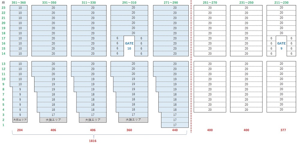 【10月16日秋田戦】声出し応援エリアの設置、ならびに夢パス等、チケット販売詳細についてホームページに掲載しました。この試合では、声出し応援可能エリアを設置いたします。詳しくは⬇️https://t.co/ebFt8cddl7#ファジアーノ岡山 pic.twitter.com/sBgIb6MJPW— ファジアーノ岡山スタッフ公式 (@fagiano_koho) September 30, 2022 ホーム最終戦の秋田戦が声出し対象試合となった。あのCスタが戻ってくる。 RSKのイブニングニュースで、秋田戦での声出し応援席は、約900席と言ってた。 公式な数字ではないけど、バックスタンドの北側から5ブロックを声出し応援エリアに設定し、大旗エリアとして1列だけ閉鎖すると、そのエリア内の座席数は1,816席となる。収容率を50%にすると、ちょうど900人くらいになる。 一方で、アウェイ自由席のエリアの設定をどうするのだろうか? 通常ならアウェイ自由席の座席数は、4ブロックで1,100席余りだけど、2016年のホーム最終戦の群馬戦では、南側の2ブロック(約500席)まで狭めたことがある。 ただ、今年の場合は、収容率を50%にすると、秋田サポさんは250人しか入れなくなるという問題があり、秋田との調整が必要になると思う。 声出しエリアのチケットの販売の順番が、次のとおりとなった。 1 バックA自由席シーパス先行 2 ファンクラブ先行 3 一般販売 これは、妥当なところだろう。日頃から、頑張っている人を優先することは。 ファジアーノのシーパス保有者は、例年3,000人くらい。 FAGIシート、SS指定席、メイン南指定席あたりは、シーパス保有率が高そうだから、指定席だけでシーパスは1,000枚くらいだろうか? 残りは、S自由席、メインA自由席、バックA自由席ということになるが、バックA自由席のシーパスは900枚もないだろうから、10月5日には完売とならず、10月6日のファンクラブ先行販売にも、いくらか回りそうだけど、争奪戦になるかもしれない。 以前は、他の席種のシーパスでも、バックA自由席に行けたが、コロナ禍でできなくなった。今はリセール制度もできたので、元のように戻ることはないかもしれない。にほんブログ村