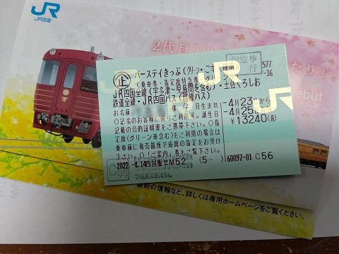 JR四国ツアーのサイト から申し込んでいた、バースディきっぷが簡易書留で届いた。