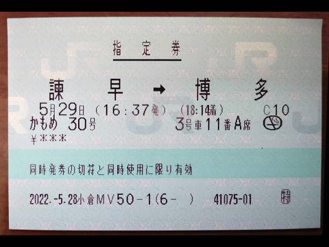 諫早駅から、16時37分発の博多行きの特急かもめ30号に乗車。