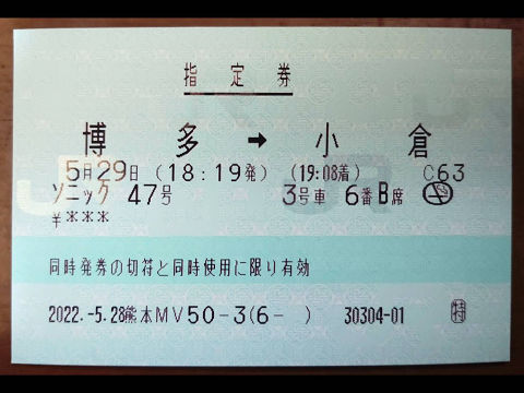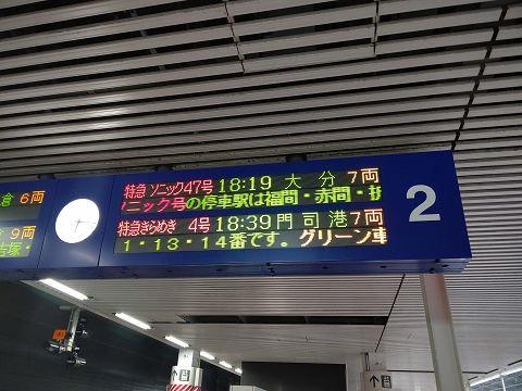 新鳥栖や博多から岡山へ直通の新幹線に乗れば、スムーズに帰れるけど、みんなの九州きっぷをフルに使うため、小倉までは在来線の特急のソニック。