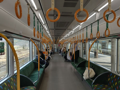 広島地区のレッドウイングと同型ではあるが、紀勢本線では、全席ロングシートで味気ない。