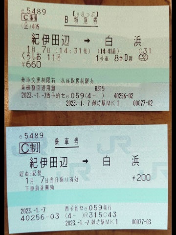 紀伊田辺から白浜までは運賃200円だけど、わずか10kmなのに指定席特急料金がなんと1,390円。くろしおは全席指定席で自由席の設定がない。