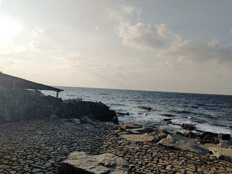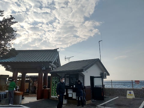 湯崎バス停で下車し、そこから徒歩5分で、海岸の岩場にある町営の公衆浴場の「崎の湯」に到着。