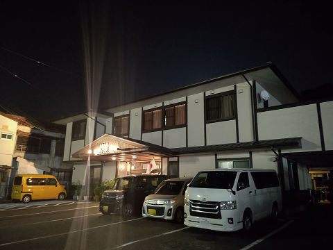 駅から徒歩5分で、今夜の宿、温泉民宿小阪屋に到着。目の前に、ファミリーマートもあるから便利