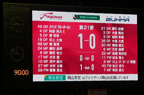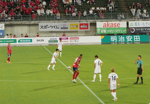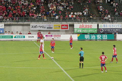 立ちがりから攻め込まれたが、順位差関係なく、互角な展開。ファジアーノに取ってはよくない流れ。