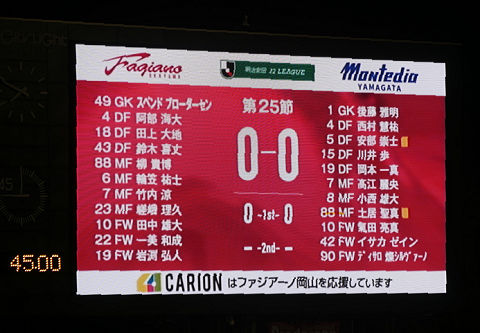 🏆明治安田J2リーグ 第25節 #ファジアーノ岡山 0-0 #モンテディオ山形