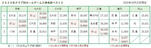 _手放しでうれしいと言うより、ほっとしたというのが正直なところ。 プレーオフ経由でのJ1初昇格での残留は、初めてとのこと。 今でも、Jリーグの公式サイトで、順位表を見るとき、J1リーグのタブを押すときの違和感がある。今節の結果をもって、ファジアーノ岡山のJ1残留が決まりました。初昇格したシーズンでの残留という、当クラブにとって非常に難易度の高いミッションは、クラブに関わるすべての方のご尽力によって成し遂げられたものと、深く感謝申し上げます。まずは今季の残り2試合、引き続き全力で戦います。— ファジアーノ岡山スタッフ公式 (@fagiano_koho) November 8, 2025 #ミネ月式2025J136節終了優勝は鹿島か柏のみに。(AFC競技会に対して)三位のメリットはゼロではないものの、最後までしっかりやるのがプロ…が、神戸はACLEに正対か?まあ賞金もあるしね。岡山/名古屋/マリノス残留確定。おめでとうございます。降格は横浜FC/湘南/新潟に。… pic.twitter.com/yQPgSeHACN— ミネ月 初日火曜東ケ-31b (@_mineja) November 9, 2025 関係方面から、お祝いのコメントをたくさんいただいている。J1残留決定✨初年度ながら強豪に勝利するなど、多くの感動や興奮をもたらしてくれました。引き続き岡山のスポーツを盛り上げていきましょう❗️ https://t.co/AOAQFz8Vcu— トライフープ岡山【公式】 (@tryhoop_okayama) November 8, 2025 ファジアーノ岡山 J1残留決定⚽️✨残りの試合も頑張ってください💪🏻これからもスポーツで岡山を盛り上げていきましょう🤝🏻❤️🔥#岡山 #岡山県 #スポーツ #ファジアーノ岡山 #サッカー #岡山シーガルズ #バレーボール https://t.co/g9Wf2J4uG2— 岡山シーガルズ (@okym_seagulls) November 8, 2025 よく追いついた!!そして!!!!J1残留決定!!!!!!!!凄いことだよ!!!!おめでとうございます!!!!!#ファジアーノ岡山 https://t.co/Cm2dpc8BvK— ウエストランド井口 (@westiguchi) November 8, 2025 自力で決めた!力がついた!最強の環境で戦い続けるそれは当たり前の事じゃない誰でもできる事じゃない諦めない止まらない走り続けるその姿絶対応援どこでも声援それが最後の力となったみんなで絶叫!ホンマに最高!留まる権利を有難う♪残りの挑戦只々期待夢追うクラブファジアーノ— 四代目 玉田玉秀斎 (@nanyouk) November 8, 2025 \#ファジアーノ岡山 #J1残留 決定‼️‼️/やったああぁぁぁぁあああ‼️‼️今節勝点を取って決められたのは大きい‼️J1の中では圧倒的に下位のクラブ規模で、J1昇格初年度「残留」のミッションを達成したのは素晴らしいです✨次節ホーム最終浦和戦は久しぶりの #ファジラジオ(🔥口🔥)و*#RSKラジオ https://t.co/jnZDFjmKBl— 坂 俊介(RSKアナウンサー) (@banshun0701) November 8, 2025 ファジアーノ1部残留おめでとう。良かった良かった。これで安心してサッカーが見れる。 pic.twitter.com/YNIjO9vbWA— 岡山県総社市長片岡聡一 (@souichikataoka) November 8, 2025 週末の川崎戦で#ファジアーノ岡山 はJ1初挑戦ながら2試合を残して残留を決めました‼️春先には特集号も作らせていただきましたが、街やサポーターの方々の“熱”は心打つものがあり、勇気ある挑戦は多くのクラブの指標になるはずです。グッとくる #木山隆之 監督の言葉などを含め… pic.twitter.com/cNhgPVxjsz— 本田健介 (@kensuke__honda) November 10, 2025 シーズン開幕前の解説者や記者によるJ1順位予想では、ガチガチの20位の大本命だった。ファジアーノサポーターとしては、客観的に見て、それは受け入れなければならにが、言葉には出さないが、「あっと言わせてみる」というのを心に秘めていた。 ここまで終わってみれば、勝ち点39あればよかったことになるけど、シーズン終盤は、9試合勝ちなしと苦しみ、は本当にしんどかったが、(我々は心配でたまらなかったが、)客観的に見れば、残留争いには巻き込まれなかった。 終盤に大失速して、39から42まで持ってくるのに苦しみ抜くのは、私のおかやまマラソンのようだ。 残留争いのライバルとの直接対決で負けなかったことが大きかったが、どの試合もギリギリの戦いだった。 27節 ○ 1-0 湘南 ← 28節 ● 0-5 京都 29節 ● 0-1 名古屋 30節 ● 2-4 東京V 31節 △ 0-0 横浜FC ← 32節 ● 0-1 町田 33節 △ 1-1 新潟 ← 34節 ● 1-2 C大阪 35節 ● 1-3 FC東京 36節 △ 1-1 川崎 ただ、2試合を残してのファジアーノ残留というのは、ファジサポ以外から見ると、大いなる番狂わせだろう。 今のところ、来年のJ1で、東京圏(首都圏)、名古屋圏、大阪圏以外のクラブで確定しているのは4つ。 資金力の無いクラブにとっては、あとが無いという危機感をファジアーノは持っていたが、地方クラブにとっては厳しい時代となった。 2021 (8)札幌、仙台、清水、広島、徳島、福岡、鳥栖、大分 2024 (6)札幌、新潟、磐田、広島、福岡、鳥栖 2025 (5)新潟、清水、岡山、広島、福岡 2026 (4)清水、岡山、広島、福岡 たしかに、浦和戦で決まるのと川崎戦で決まるのでは、3週間も違う。この差は大きい。 去年は、プレーオフで最後の最後にカテゴリーが決まったが、今年は、クラブは来季に向けて補強も進