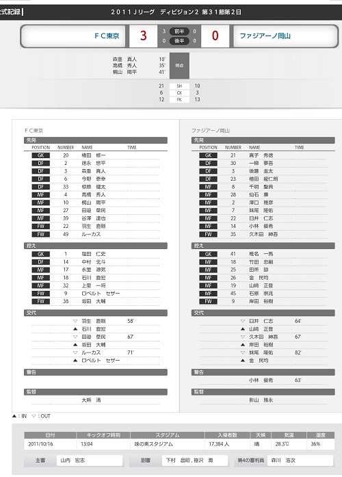 _楽しくてたまらなかったJ1最初のシーズンもあっという間に終盤戦。いい形で終えるためにも、まずは、今日のアウェイFC東京戦で勝ち点3を。 2011年のアウェイFC東京戦。力の差をまざまざと見せつけられる完敗。先発メンバーに懐かしい名前が並んでいる。 控えメンバーもロマンがあふれる。石原くんとか岸田選手とか、みんきゅんとか。 この年のFC東京は、シーズン序盤こそ、J2の水に慣れずに苦戦したが、終わってみれば、ぶっちぎりのJ2優勝だった。 ちなみに、ファジアーノは、草津、北九州、栃木などの後塵を拝し、13位に終わった。 当時のビジターゴール裏は約300人で、そのうち声出しは100人ほどだった。 今日はどれくらいになるんだろう? 今シーズンは、羽田行きの朝一の便のANA652便にはたくさんお世話になった。今日のB767は満席。今年もこの便に乗るのは、今日と川崎戦の2回だけ。 今日も、両備さんに見送っていいただいた。〈両備ファジアーノ全力応援プロジェクト〉岡山桃太郎空港でアウェイ戦応援のサポーターをお見送り 岡山県民の想... https://t.co/7R67HJ7i3Z pic.twitter.com/pk9n5susPP— PR TIMESライフスタイル (@PRTIMES_LIFE) October 21, 2025 今回の遠征では、特に観光は考えていなかったので、横須賀線でも乗り潰そうかと思ったが、FC東京サポさんがお勧めの店を紹介してくれたので、ラーメン店へ行くことにした。 ラーメンは割高な感じで、カロリーも高いので、年に1回食べるかどうかだが、いい機会なのでチャレンジ。半年前 #東京サポを岡山から空腹で帰すな で楽しませてもらったお礼として#岡山サポ東京遠征 用に「永福町大勝軒」を勝手に紹介🍜70年の歴史、上質な煮干醤油スープと上を覆うラード、少し柔らかめの麺が特徴です。麺を溶き玉子に付ける食べ方が定番🥚有名店だらけの都内ですがここは必食です pic.twitter.com/CaD4mVCNhD— LEGO🗼 (@nigenshoku) October 24, 2025 スタジアム直行ならば、新宿から京王線ということになるが、渋谷から井の頭線で永福町駅まで。 小雨模様。店は駅前にあったが、10時過ぎには7人ほどの列。開店の11時までは1時間ほど待たなければならない。 営業開始は、きっちり11時からだが、店内で待たせてくれた。 中華麺(メンマ付)1,380円を注文。 煮干しと昆布ベースのあっさりしたスープは、懐かしい中華そばの味。 メンマ付きは、メンマがたくさんトッピングされているのかと思ったら、小鉢の中に山盛り入っており、半端な量もじゃなく、一生分食べたような感じだ。 ボリュームありすぎて、お腹いっぱいでもう動けない。 店の外へ出ると、行列は20人を超えていた。 飛田給駅では、駅員もユニ着用で、あきらかにヴェルディ戦の時よりも力が入っている。 今季2度目の味の素スタジアム到着。 コンコースでは、ファジグッズの出張販売。 アジアン屋台料理の店。 小雨が降り続く味の素スタジアム。これから、本格的に降り始める予報。 ゴール裏の座席は前から20列は雨に濡れそうだ。 メインスタンドの端っこのメインS指定席は、ビジターユニ着用可。 ヴェルディ戦では開放されないゴール裏2階席も、ビジター指定席。 試合を俯瞰できるし、喧噪から少し離れて、じっくりと観戦できるエリアだ。 今日のファジサポは、メインスタンド、ゴール裏あわせて、1,500人くらいになるとのこと。 スポンサー紹介では、三菱商事、三井物産、住友商事がオフィシャルスポンサーとか、首都のクラブは違うな。 主審山下良美のアナウンスにざわつく、ファジアーノ応援席。 桃太郎チャントを歌ったが、 FC東京のユルネバと被って、事実上、歌ったことにはなっていない。前口上省略で、瞬時にぶちこないと、なかなかタイミングが難しい。 にほんブログ村