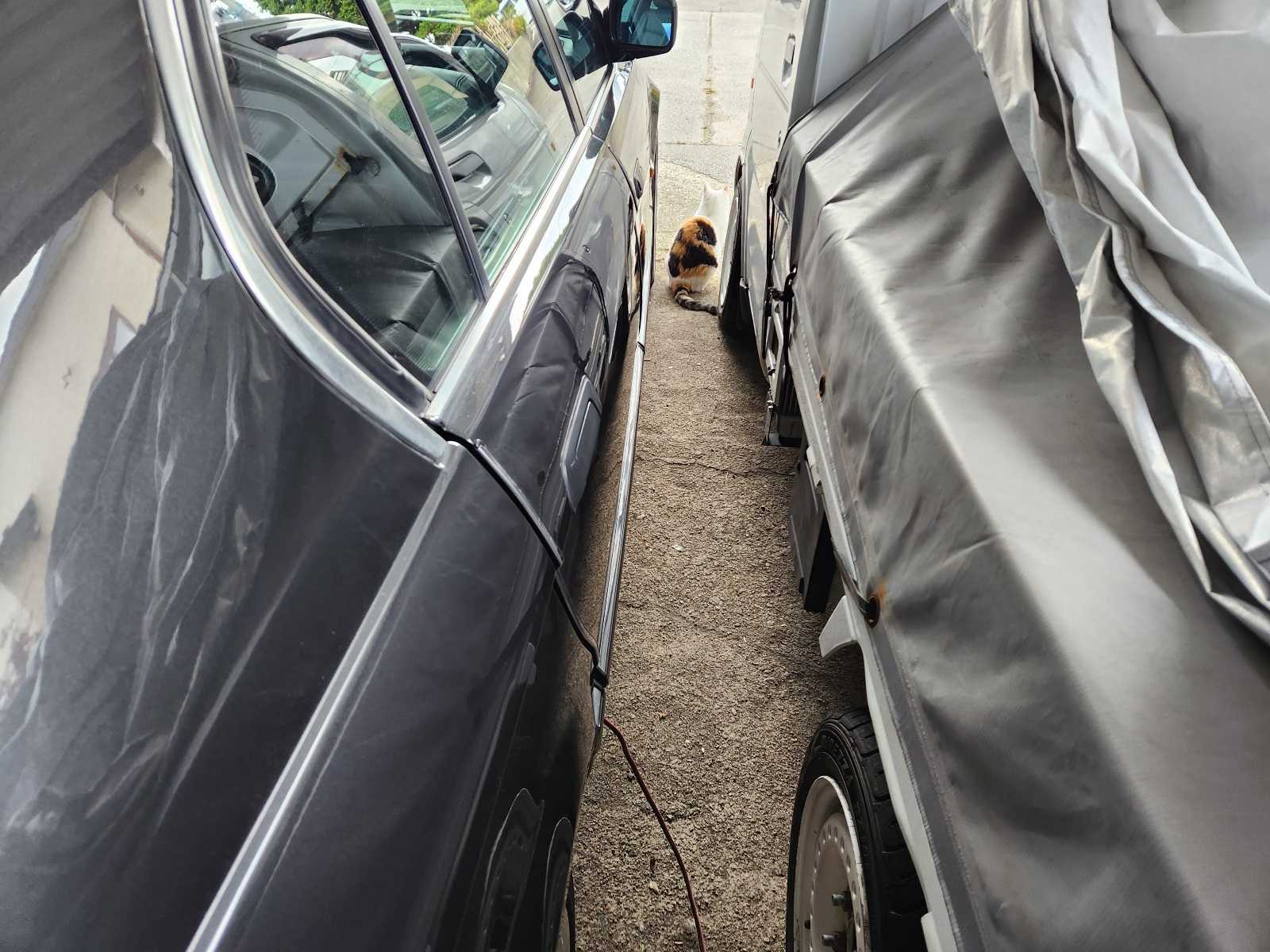 750の場所を移動させて、真ん中にして…E30MTを車庫から移動しました。作業しながら…