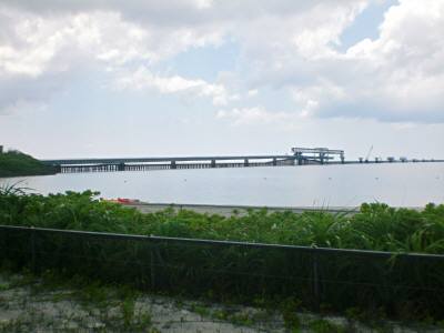 宮古島に移住して伊良部大橋建造中今日は衆議院総選挙の日です。11時過ぎに、宮古島市役所の1階ロビーに設置された投票場に出かけて行きました。皆さんも投票されました?で、少し早かったんですが、昼食を食べるために喫茶店へ。今日は日曜日なので日替わりランチがありません。そこで頼んだのは「みそ汁」です。内容は、ご飯+みそ汁+アイスコーヒー=600円。みそ汁は、丼ぶりに山盛りの野菜にポーク、他に卵ものっていて栄養満点です。食べ終わって店を出てみると、雲が出ていて直射日光が弱かったので、現在建設中の「伊良部大橋」の現場を見に行く事にしました。昼食を食べた喫茶店から車で約7~8分。広大な埋立地「ツーリバ地区」に着きました。駐車場は海岸のすぐ近くで、以前利用した事のあるシーカヤック乗り場の看板とカヤック数艇が置いてありました。その横を通り過ぎると、もう砂浜です。前に広がる海の方角を見ると、既に、宮古島側から海に向かって伸びています。上の写真の更に右側の様子は下の写真のようになっています。見えにくいですが、左から延びている橋が途中で途切れています。右側に伊良部島がほんの少しだけ見えています。この写真では見えませんが、伊良部島側からも工事が進められているんです。工事中の橋の途中に、大きい枠の様な物が見えていましたが、ここが架橋工事の最前線です。この先までずーっと橋のような物が伸びていましたが、これは工事作業用の仮の橋なんです。海面のすぐ上が仮の橋で、その上に本物の橋げたが見えています。更に上には、その橋げたをつりさげて海上の工事現場に運搬するクレーン(?)があります。全長約4000m、海上部分だけでも3500m以上と言われていて、宮古島諸島では最長の橋になります。現在は、宮古島の北端に位置する池間大橋と、西端に位置する来間大橋がありますが、いずれも1400m程度です。それでも、大海原の上を車で走る爽快感は抜群です。その約3倍となると、どんな感じになるんでしょうか?!!きっと、観光の目玉になるんでしょう。3年後には完成予定です。伊良部島のすぐ横の下地島には、ジェット機操縦訓練用の空港があります。現在の宮古島空港よりも滑走路が長いので、3年後にこの橋が完成した場合、宮古島への旅客機の便数が増えるといいですね。下地空港の自衛隊利用(駐屯)の是非が宮古島では話題になっていますが、今日の衆院総選挙の候補3名共に反対の意思表示をしています。地域活性化のためにも、できれば早く民生用として下地空港を活用できるといいんですが、どうなるんでしょうか?
