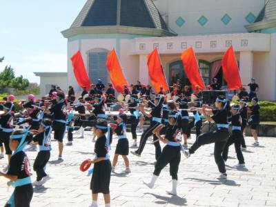 宮古島に移住してエイサーページェント2009昨日8月2日(日)のお昼、宮古島の「うえのドイツ村」という所で「地球スペシャル エイサーページェント2009 ~地球は舞台~」 というイベントが行われました。正午前に自宅を出て、約20分位でドイツ村に到着。その中にあるキンダーハウス前広場が会場です。既に大勢の子供たちや親御さんが日蔭を選んで座っています。ものすごくいい天気(本当は曇り=いい天気だと思っていますが)で、日差しの中で待つのは辛いです。そこで、食堂に入って、野菜そばを食べ、冷房で体を冷やし、新聞を読んで明日以降の情報収集をしていると、開会のアナウンスが聞こえてきました。早々に広場に出てみると、さっきよりかなり人が増えています。 最初の演目は「旗スーマチ」2番目は「風の結人」3番目が「あぶじゃーま」お面をつけたエイサーは初めて見ました。お面は、宮古島の島尻地区で今も行われている奇祭「パンツーン」のお面とよく似ています。更に「獅子舞」獅子舞は何度も見ましたが、一度に4頭も出てきたのは初めてです。 動きが非常にリアルで、案外可愛いです。ここまでは全て、琉球国祭り太鼓・宮古支部の方たちが演じました。 この後も、高校生のダンスユニット「ミニッツメイド」単独によるによる「ダンス」続いて琉球国祭り太鼓の皆さんとのコラボで「鳥刺舞」と続きました。宮古島に来てから何度もエイサーは見ましたが、これほど様々なエイサーがあるとは知りませんでした。 ここまでが前半で、まだまだ続いていろんなエイサーが演じられましたが、続きは明日のブログで紹介します。