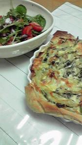あんにょん♪ 主婦をしていると 毎日の夕飯の献立を考えるのが ぅ―(-(工)-;)―ん.... 家族の好きなものや 旬のものとか・・・ でも1番は今夜自分が食べたいもの?かな (⊃´∀`)⊃))なんでゃねん いえいえ 主婦なんだから?? ププ(*´・v・`)ププ ス-パ-へ行って その日の特売と冷蔵庫の中を 思い出しながら 献立をつくるものです (*^皿^*)ノァハハw 早くそんな主婦にならないといけない?のかな~~と 思いながら ( ̄∇ ̄(_ _( ̄∇ ̄(_ _ ) ウンウン 今夜はキッシュが食べたいと思い ほら!ほうれん草が安い! うちにはベ-コンもパイ地もあるじゃない 決定 (☆-∀・)ьデス 今夜はキッシュです そして タコとベビ-リ-フのサラダ とくりゃあ~~ワインか! でも今夜は飲まずに 食べました! だってひとりで飲むのはつまらないもの°・(((p(≧□≦)q)))・° でも おいしかった♪(自画自賛)