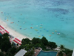 グアム2人で3万円弾丸ツアー報告~つかれた~なんてもんじゃなかったです飛行機1時間遅れで出発して着いたのが夜中の2時過ぎで中2日しかないのであまり寝ないで1日目にマイクロネシアンモールとKマート行ったらお友達がしていた万歩計確認したら18,000歩も歩いてましたおかげで2日目の夕方から具合悪くなちゃってホテルにマッサージよんじゃいましたよ 左ホテルの部屋から見た海です 右ホテルのプール海とつながって見えるのがうりみたい購入してきた物はここでダイヤ バイザヤードピアスキャハ~これ2年越しでやっと私の元へ一昨年のお正月に銀婚式の記念にハワイに娘夫婦達は新婚旅行て事で一緒に行ってきたんだけどそこでパパさんは記念にって事でカルチェの60万近い時計を購入してペアーで買おうって言われたけど私はティファニーの一粒ダイヤピアスが欲しかったのでティファニーへ行ってちょうどいいカラットが無くて80万ぐらいの大きなダイヤの買っていいよって言われたけど私があんまり大きいのすると本物に見えなくてCZみたいじゃないなので諦めて帰って来たけどだからって日本では買う気しないしねぇ今回これを購入しに行って来たもんみたいです貧乏性なので80万の半額のにしちゃいました0.3と0.31合計0.61なので大満足~てな訳で今回は大物購入したので他にあまり購入しなかったですあとはNINE WESTの本革スエードブーツこれアウトレットで安かったので娘にとオソロで購入しちゃいました楽天で調べたら4分の1ぐらいでした↓ 左 チュニック20ドル右 ガラス花瓶にフェイク花 素敵でしょう抱えて持って帰って来ました 本革サンダルこれ中敷がウレタンみたいで疲れなさそうだったのでジーンズで履くとブーツ履いてるみたいに見えて自分の物は以上あとはお友達のお土産とか細々した物もう安くても弾丸ツアーには行きたくないです~前に行った時はこんなに疲れなかったのに年を感じちゃいました今度行く時は高くてもゆったり出来る旅行が良いなぁ~
