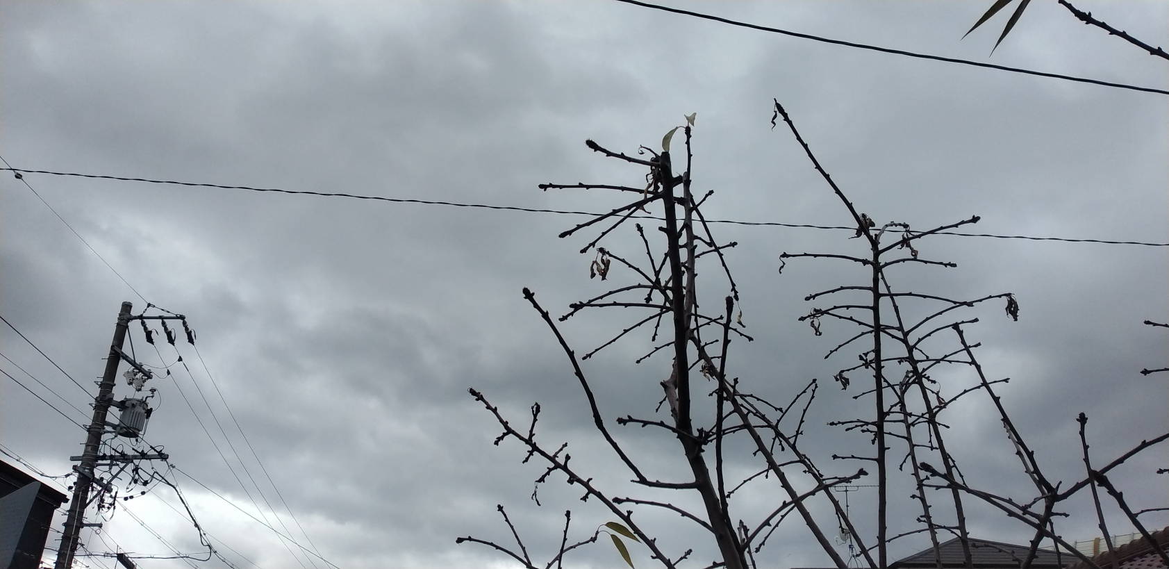 →/ (最低気温5℃ 最高気温14℃)7時くらいまで雨が降っていましたが、その後は天気が回復し春のような暖かさになりました。朝の台所はいつもなら8℃前後なのですが、今朝は13℃もありました。午後の部屋の中は16℃あります。(エアコン暖房無し。)いつもと同じようにダウンを着て自転車で買い物に行ってきたら暑かったのでもっと薄い上着でもよかったかも。買い物から帰ってからサイダーを飲みました。 暑いと言っても冬だけあって一気に体が冷えていきます。13時頃の西の空。/ 右下の木はアーモンドです。葉がほとんど散り花芽や葉芽が目立ってきました。今日は割と暖かいので昼頃はソラニャンが家の中をうろうろしていました。 いつもならベッドの布団やコタツに潜りこんで出てこないんですけどね。 プラゴミを漁っています。明日も最高気温14℃の予報が出ています。新年早々に雪が降ったので今年は寒くなるのかなと思いましたが..... (気象庁HPよりコピー) ーーーーーーーーーーーーーーーーーーーーーーーーーーーーーーーー土曜の夜にくしゃみ、鼻水が出るようになりましたが、風邪薬を飲んで早く寝たので日曜日には風邪の症状は治まりました。やはりコタツに潜って寝るのはよろしくなかったようです。以 上