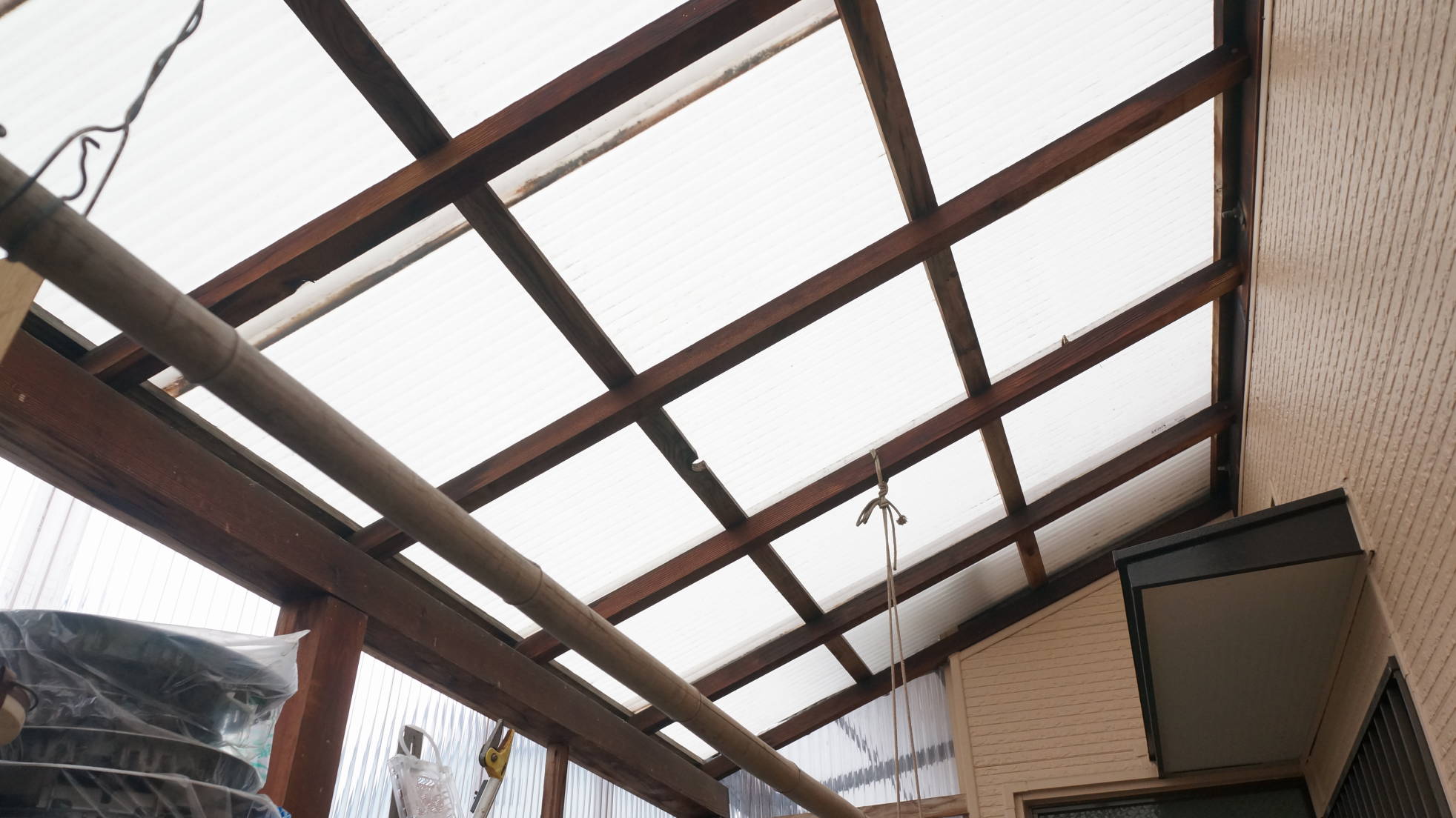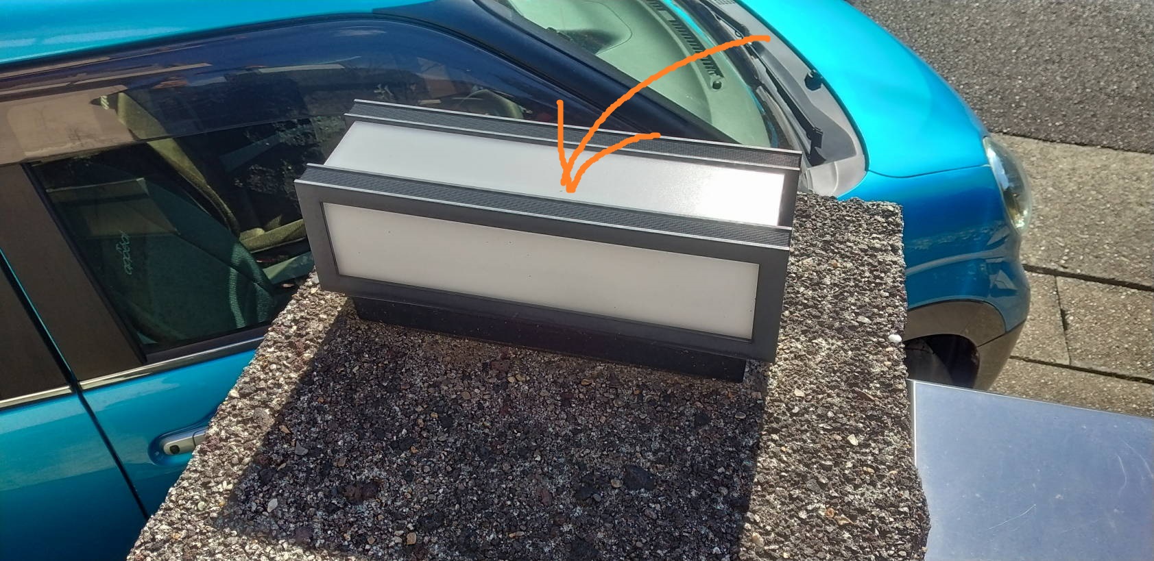 (最低気温2℃ 最高気温10℃)今日も晴れて良い天気になりましたが、強めの風に煽られて日除けがバタバタしています。ーーーーーーーーーーーーーーーーーーーーーーーーーーーーーー監視カメラを使い始めてから、夜間、門灯の光によるゴースト(&フレア)で画像が不鮮明になるのが気になっていました。 (ゴーストとフレアについては以下のリンク先を参照してください。)↓カメラレンズの基礎知識入門、ゴーストとレンズコーティングの関係を解説https://engineering-university.yamasee-otto.com/lens-basic5/矢印の面から出る光がベランダに設置した監視カメラのレンズにもろに当たるのが原因で、試しにこの面を板で覆って光を遮ったところゴースト・フレアが消えて鮮明な夜間映像を得られるようになりました。(手前側の面の光は影響ありません。)風で飛ばされないように厚い板を門灯に載せましたが、これだけでは殺風景なのでダイソーで買ってきた針金の自転車(税抜き200円)をくっつけました。(配線用ステープルで板に固定。)今日は風が強いですが、今のところは飛ばされていません。 でも、さすがに台風の時は避難させた方がよさそうです。ーーーーーーーーーーーーーーーーーーーーーーーーーーーーーーーーーーーダイソーで小さな観葉植物も買ってきました。 車の中でひっくり返らないようドリンクホルダーに載せてきました。 車の中に観葉植物があると癒されますね。今の時期なら温室代わりになるかな?観葉植物を買ってきてからソラニャンに葉を食べられる恐れがあることに気づきました。 コタツ机の上に置いて鑑賞しようと思ってましたが、何か対策が必要ですね。今のところ観葉植物に気づいていないようです。以 上