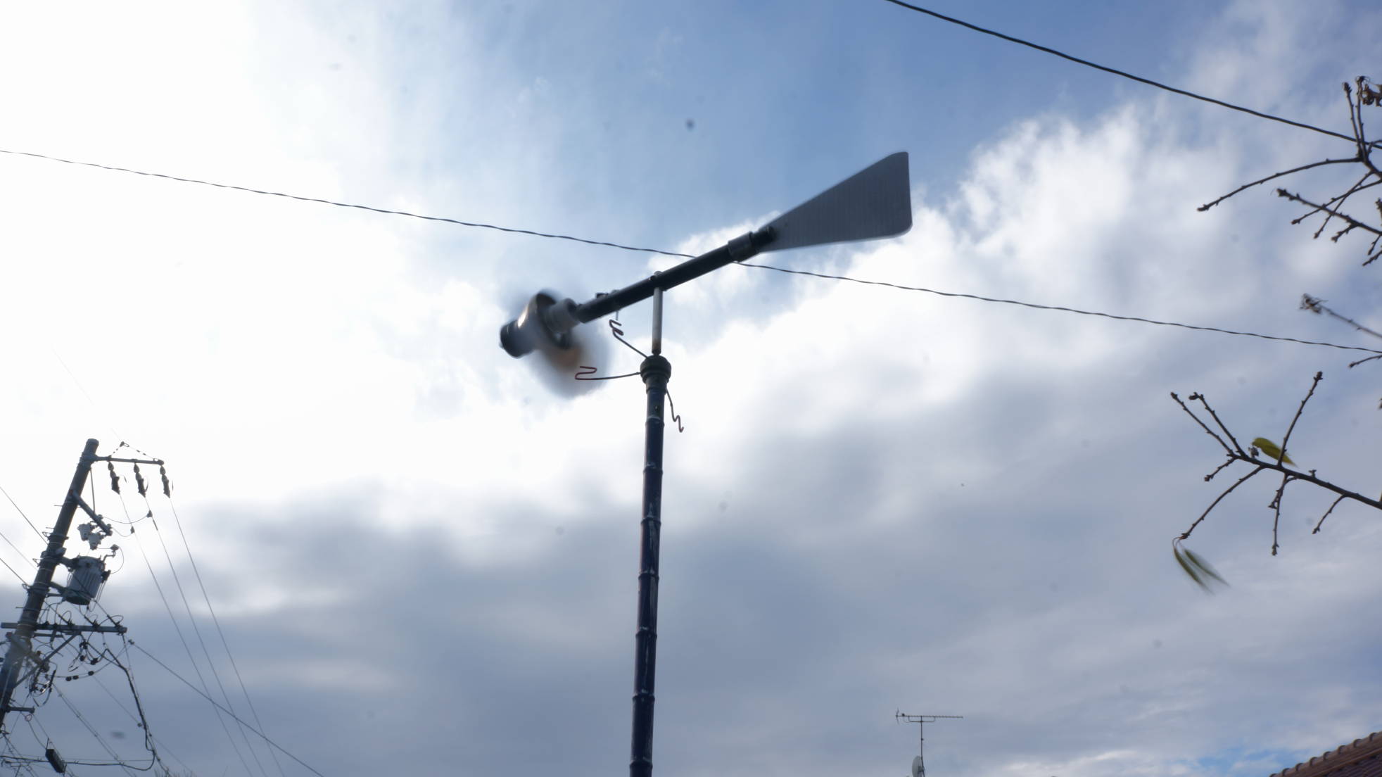 / (最低気温-1℃ 最高気温8℃)今朝は氷点下だったので車のボディーやガラスが凍っていました。メダカ水槽はトロ舟を被せているので水は凍っていませんでしたが、水温は3℃まで下がっていました。13時少し前の空。 曇り空ですが、時々雲の切れ間から青空が見えます。ーーーーーーーーーーーーーーーーーーーーーーーーーーーーーーメダカ水槽で使っているソーラーエアーポンプのモーターが届いたので交換しました。今回発注したものはモーターにリード線が半田付けされています。矢印がモーターです。 (モーターとポンプは一体になってます。)今まではソーラーパネルの裏側に両面テープで留めてましたが今回はタッパーの中に収納してみました。ソーラーパネルをひっくり返したところ。 簡単なカバーなので中に埃や湿気が入りますが、タッパーの中なら埃や湿気からモーターを守ることが可能です。(放熱の問題が考えられるので日陰に置こうと思います。)ソーラーパネルを日当たりの良いところにぶら下げました。 ーーーーーーーーーーーーーーーーーーーーーーーーーーーーーーーーーーお母さんの回転椅子の上で寝ていたソラニャン。 カメラを向けたら気配で起きてしまいました。 今週、土日は天気が悪そうです。日曜の降水確率は80%です。以 上